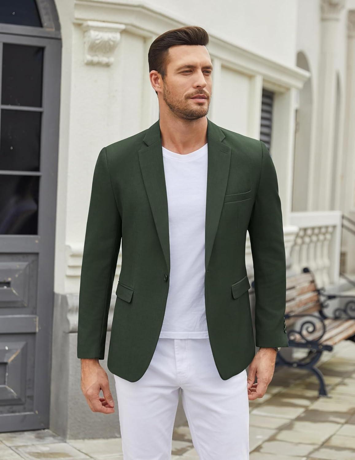 COOFANDY Men’s Casual Blazer One Button Sport Coat Slim Fit Lightweight Suit Blazer Jacket(Army Green)