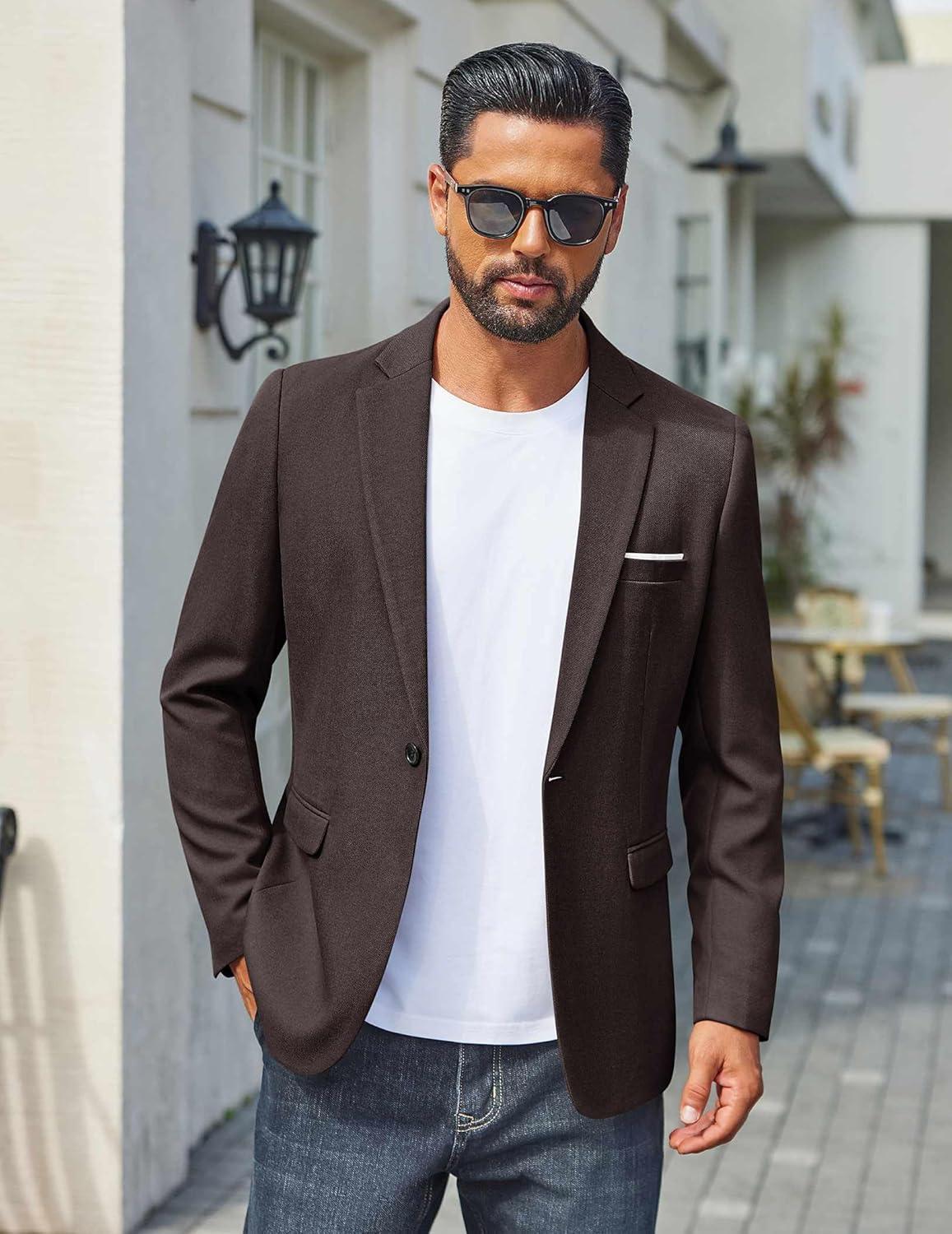 COOFANDY Men's Casual Blazer One Button Sport Coats Lightweight Suit Jacket(Brown)