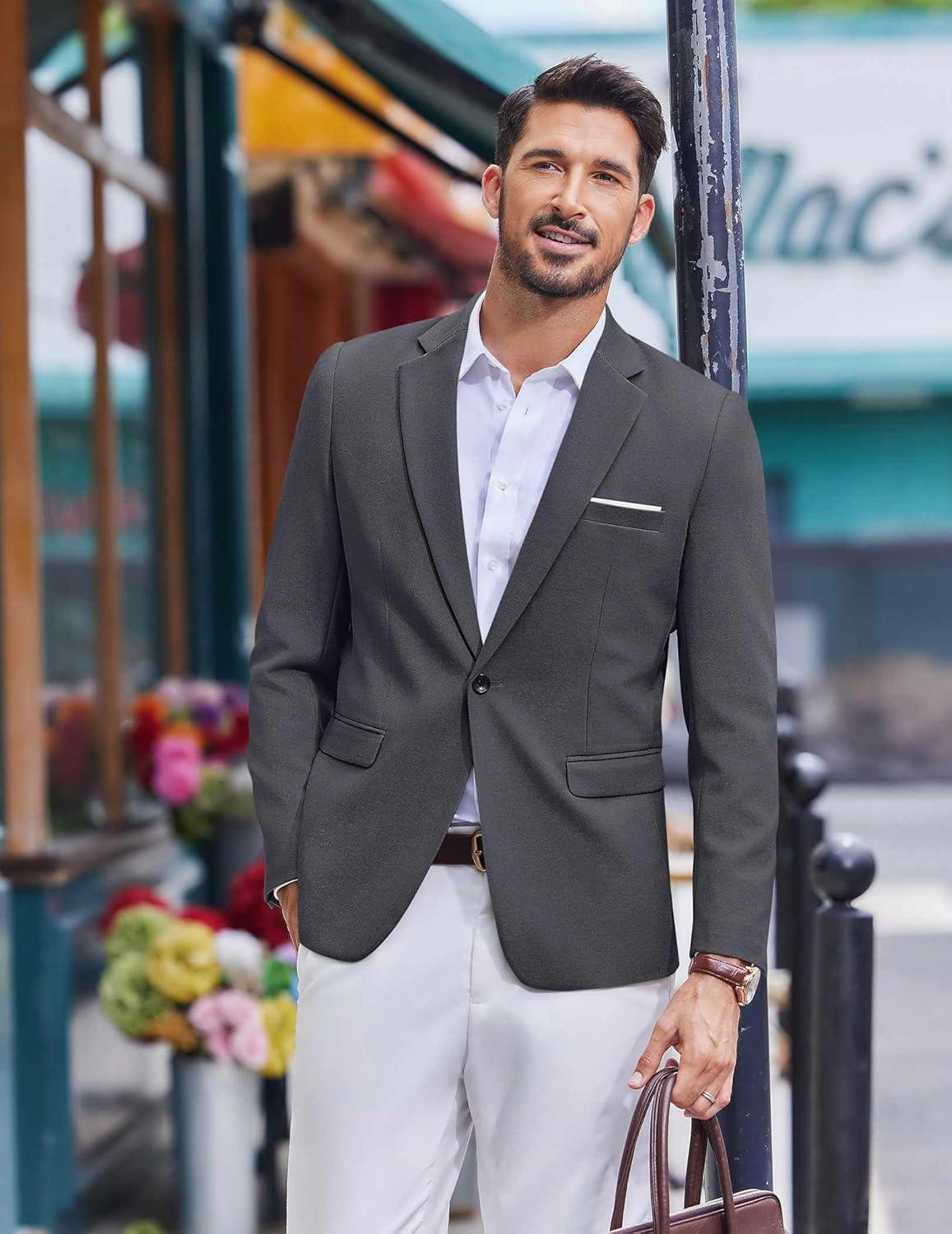 COOFANDY Men’s Casual Blazer One Button Sport Coats Lightweight Suit Jacket(Grey)