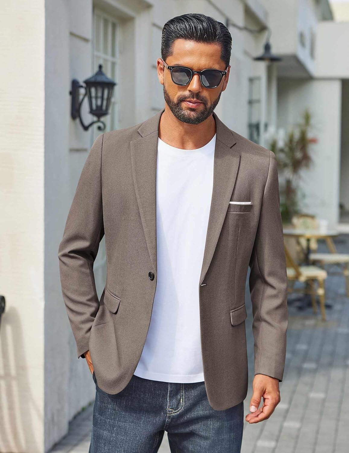 COOFANDY Men's Casual Blazer One Button Sport Coats Lightweight Suit Jacket(Tea Grey)