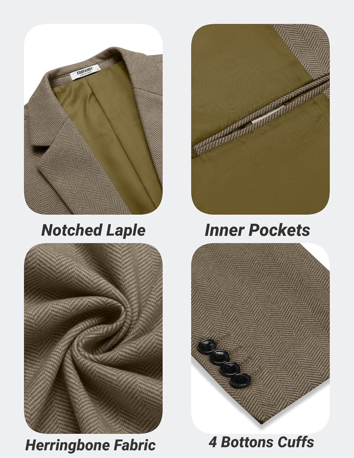 COOFANDY Men's Casual Blazer One Button Sports Coat Tweed Herringbone Suit Jackets Formal Dress Blazers(Army Green)