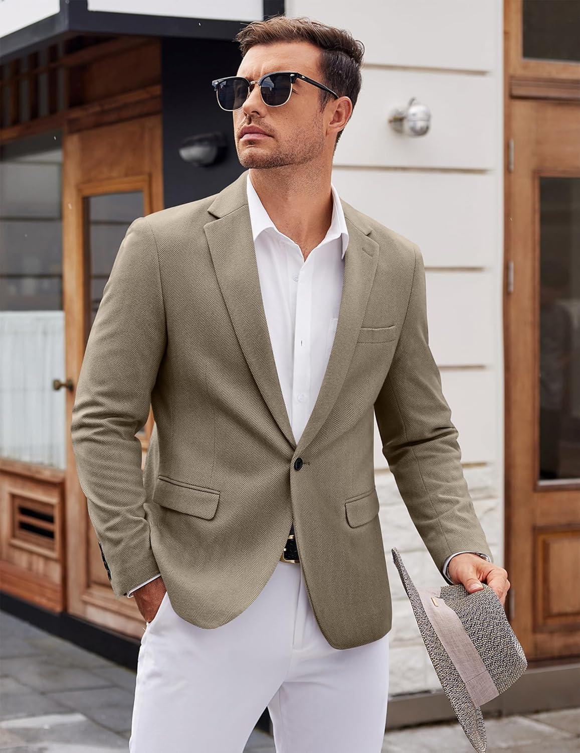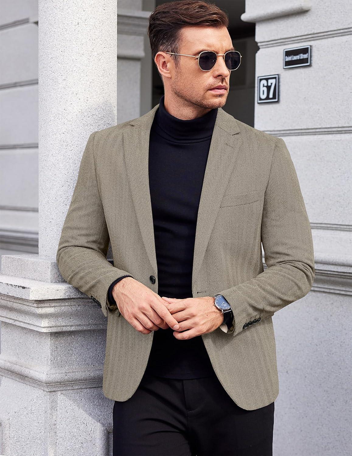 COOFANDY Men’s Casual Blazer One Button Sports Coat Tweed Herringbone Suit Jackets Formal Dress Blazers(Army Green)