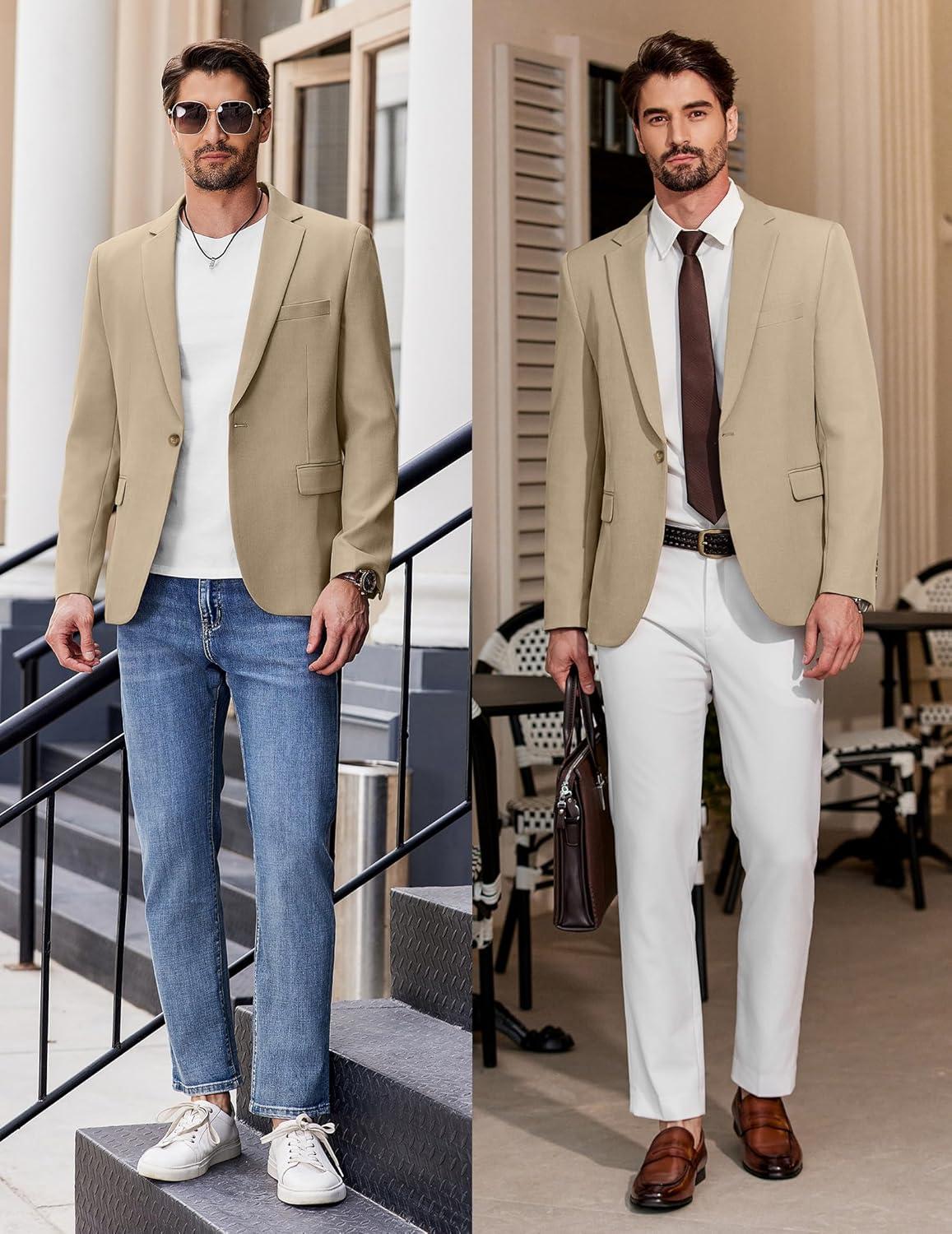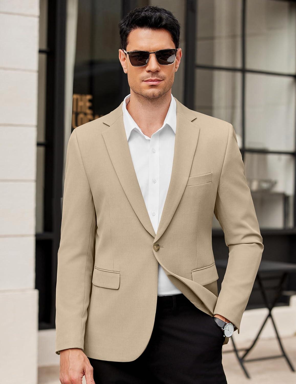 COOFANDY Men’s Casual Blazer Regular Fit Lightweight Sport Coats One Button Suit Jacket Dress Blazer Jackets(Light Khaki)