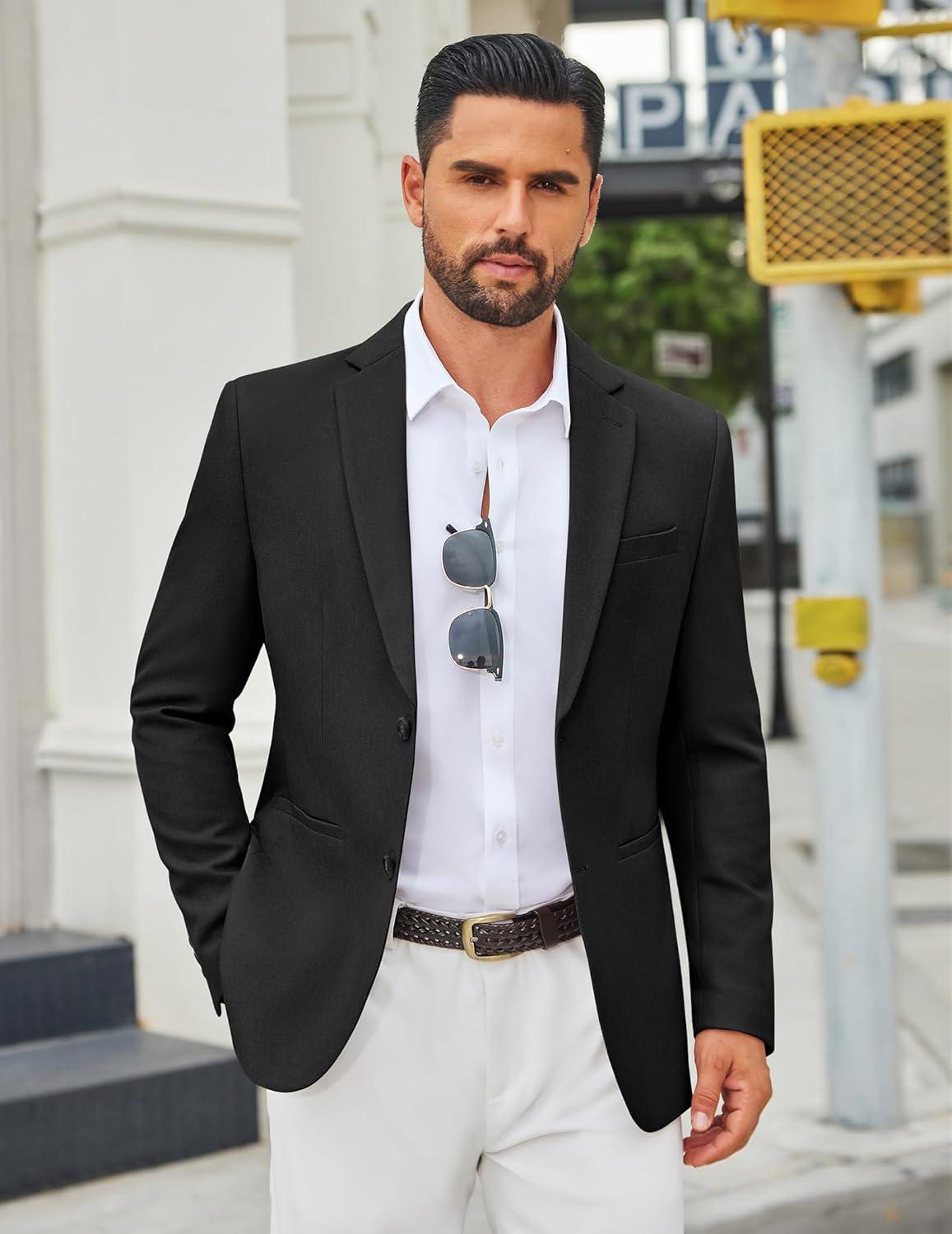 COOFANDY Men’s Casual Blazer Regular Fit Sport Coat Lightweight Two Buttons Suit Jacket(Black)