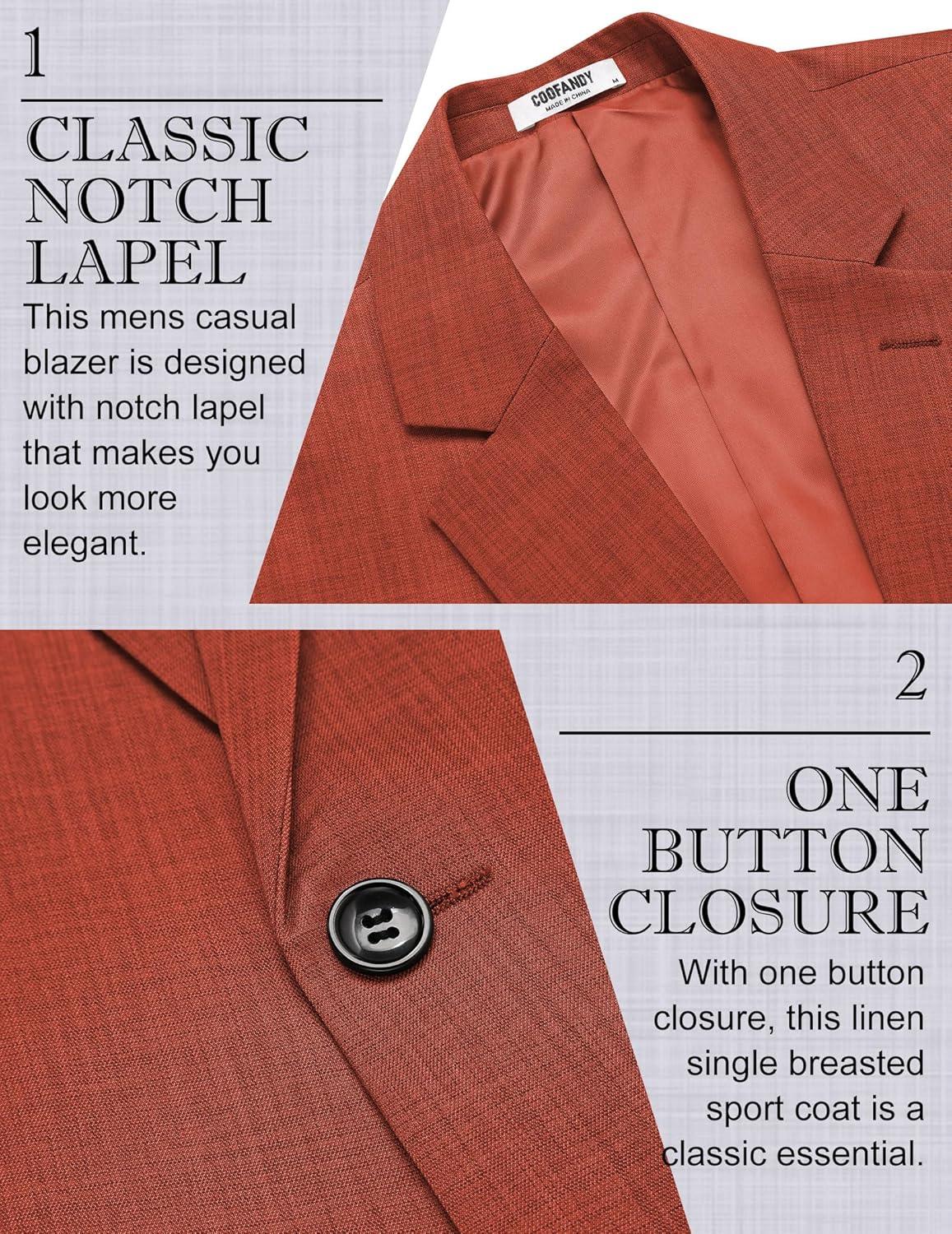 imageCOOFANDY Mens Casual Blazer Slim Fit Lightweight Sport Coat One Button Suit JacketBrown