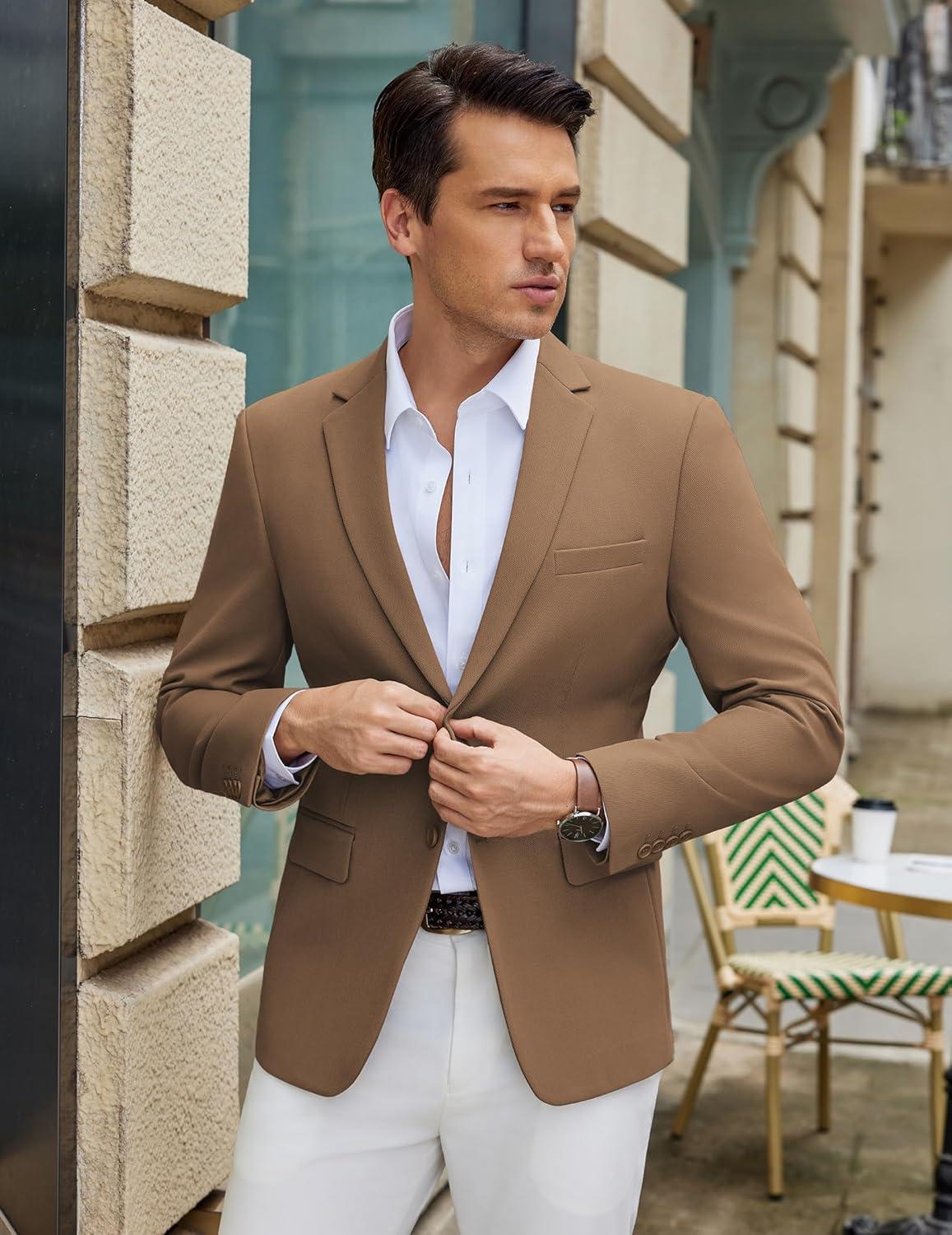 COOFANDY Men’s Casual Blazer Slim Fit Lightweight Sport Coat Two Button Suit Jacket(Brown)
