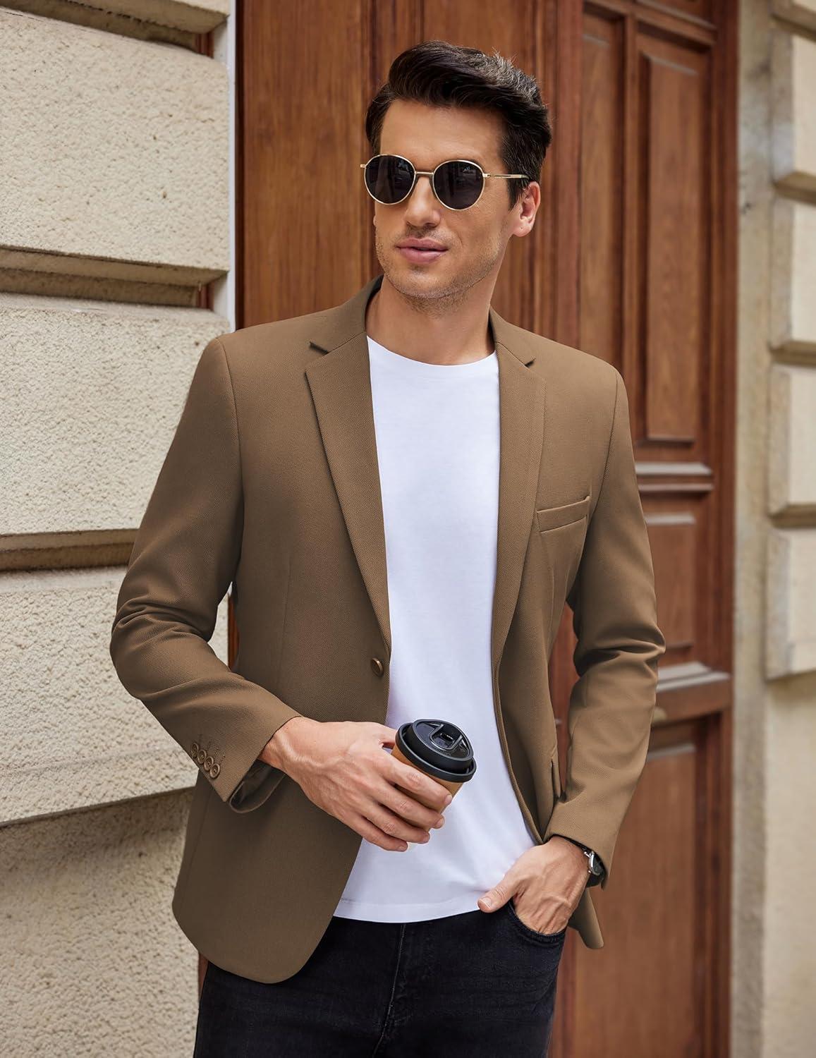 imageCOOFANDY Mens Casual Blazer Slim Fit Lightweight Sport Coat Two Button Suit JacketBrown