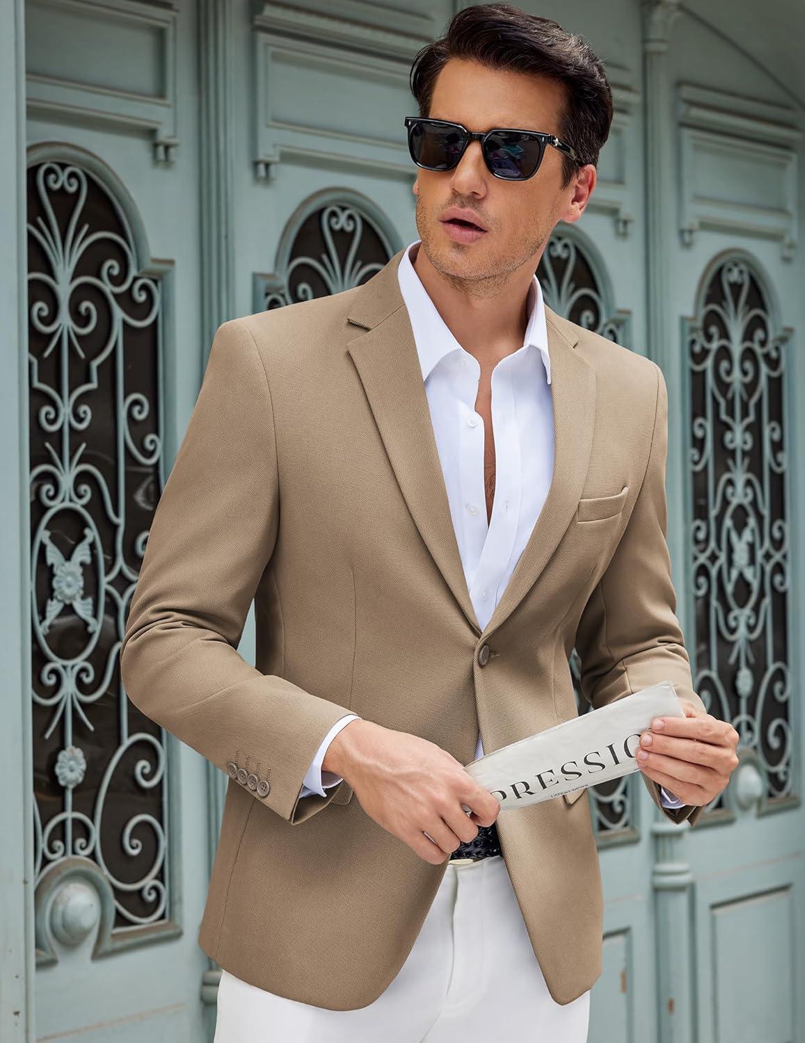COOFANDY Men's Casual Blazer Slim Fit Lightweight Sport Coat Two Button Suit Jacket(Khaki)