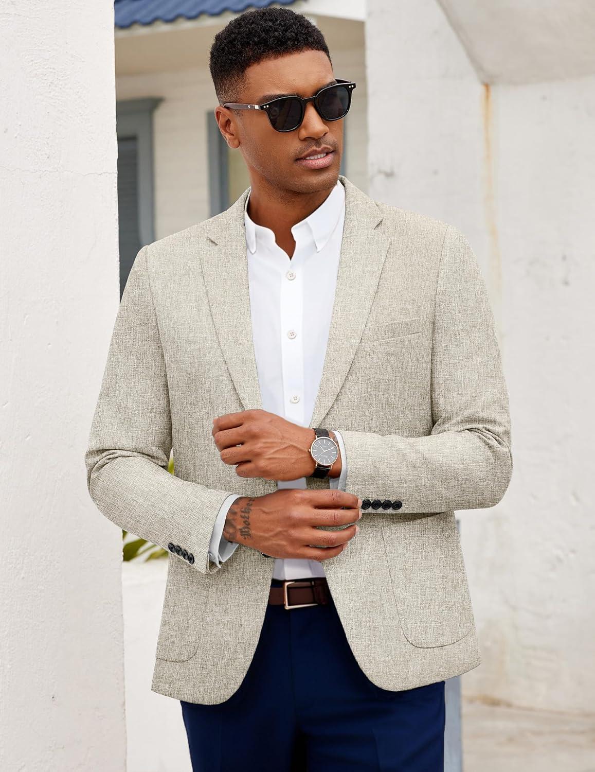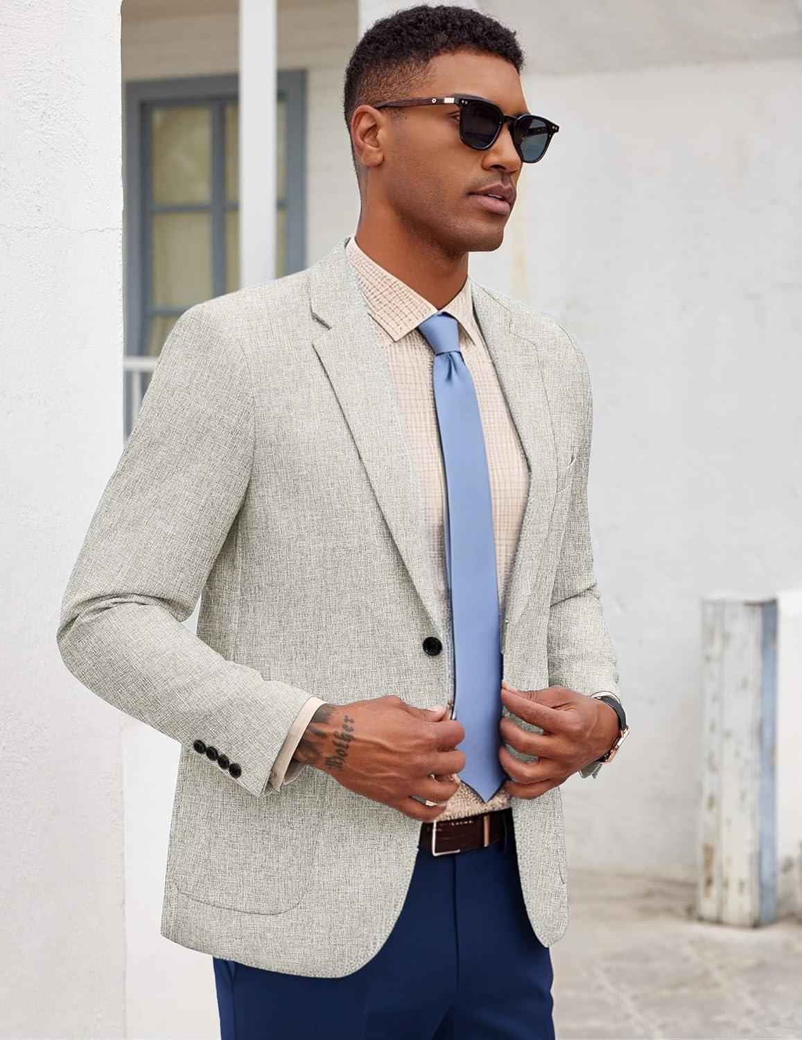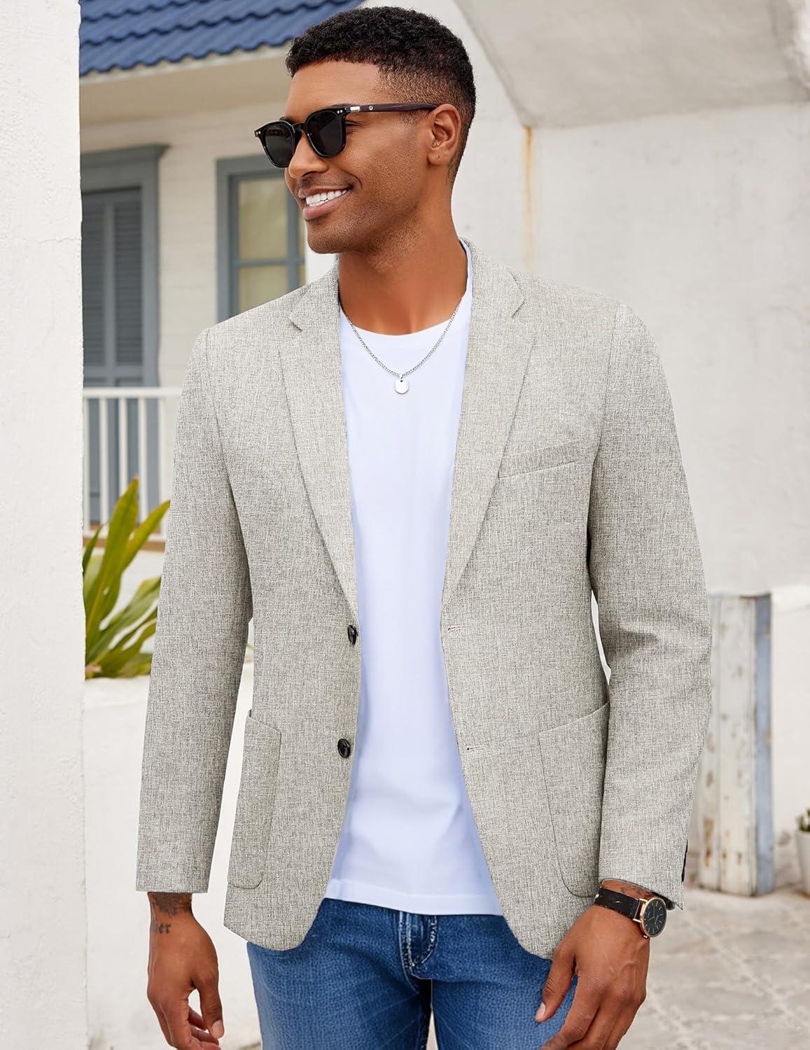 COOFANDY Mens Casual Blazer Slim Fit Sport Coat Lightweight Two Button Suit Jackets(Light Grey)