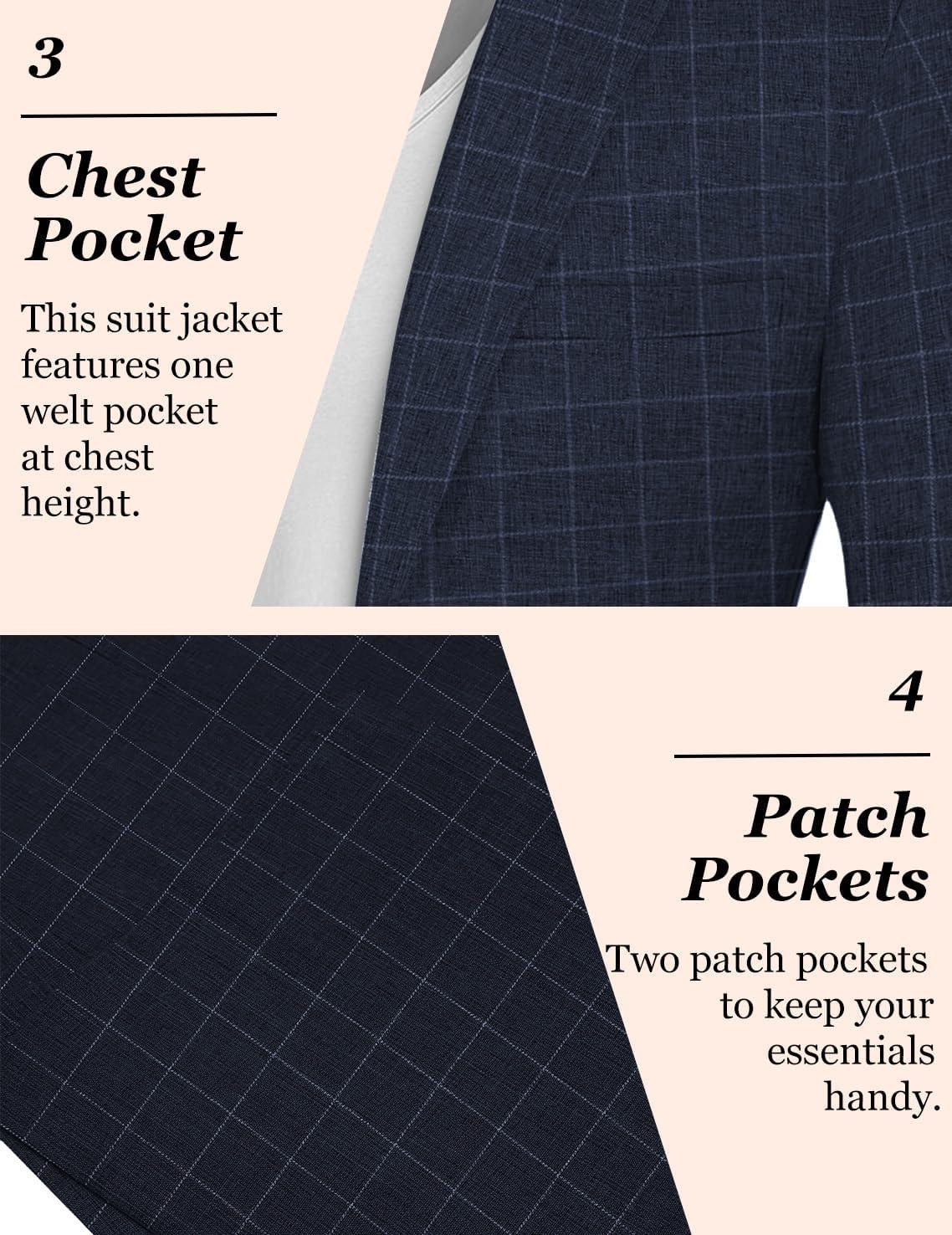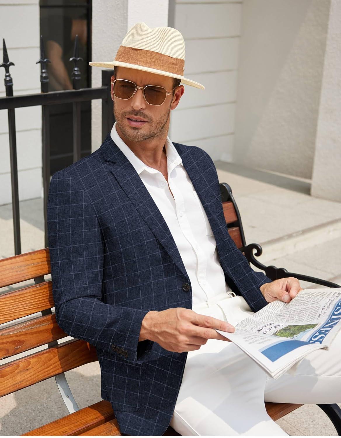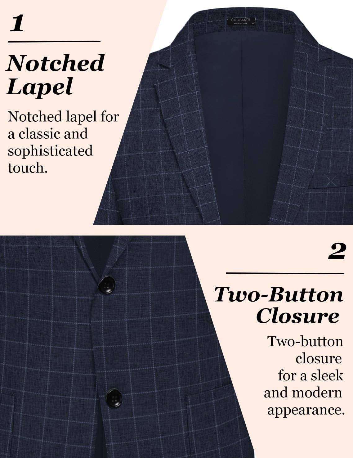 COOFANDY Mens Casual Blazer Slim Fit Sport Coat Lightweight Two Button Suit Jackets(Plaid Blazer- Navy Blue)