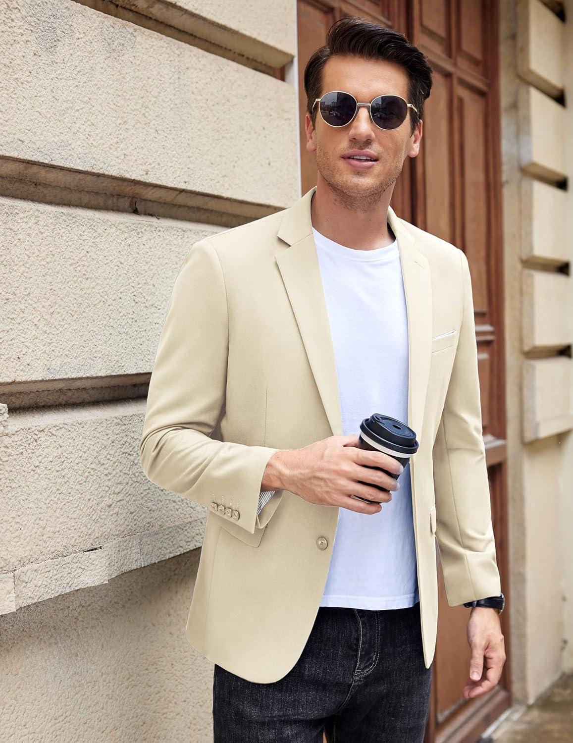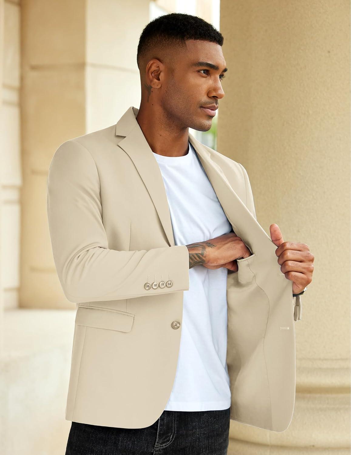 COOFANDY Men’s Casual Blazer Slim Fit Sport Coat Suit Jacket Lightweight Two Button Blazer Jacket(Beige)