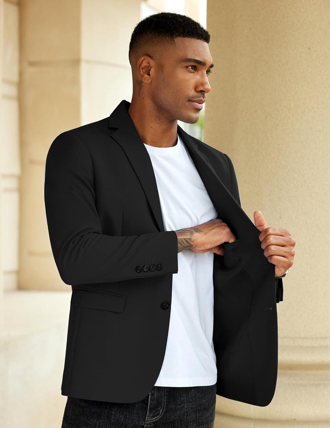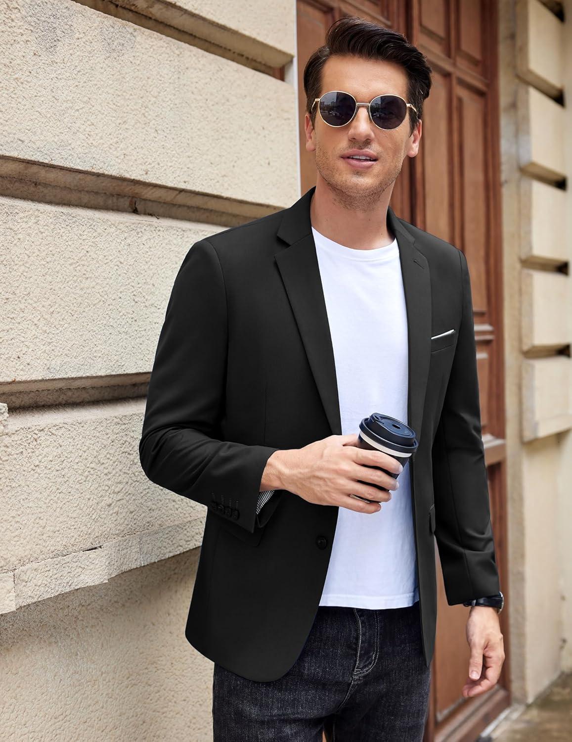 COOFANDY Men’s Casual Blazer Slim Fit Sport Coat Suit Jacket Lightweight Two Button Blazer Jacket(Black)