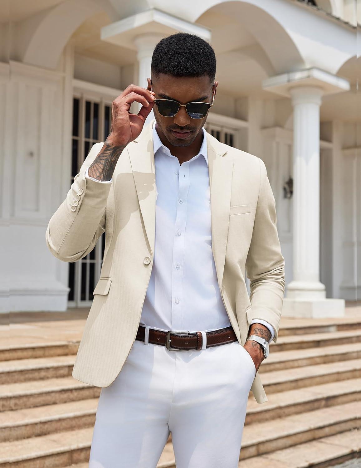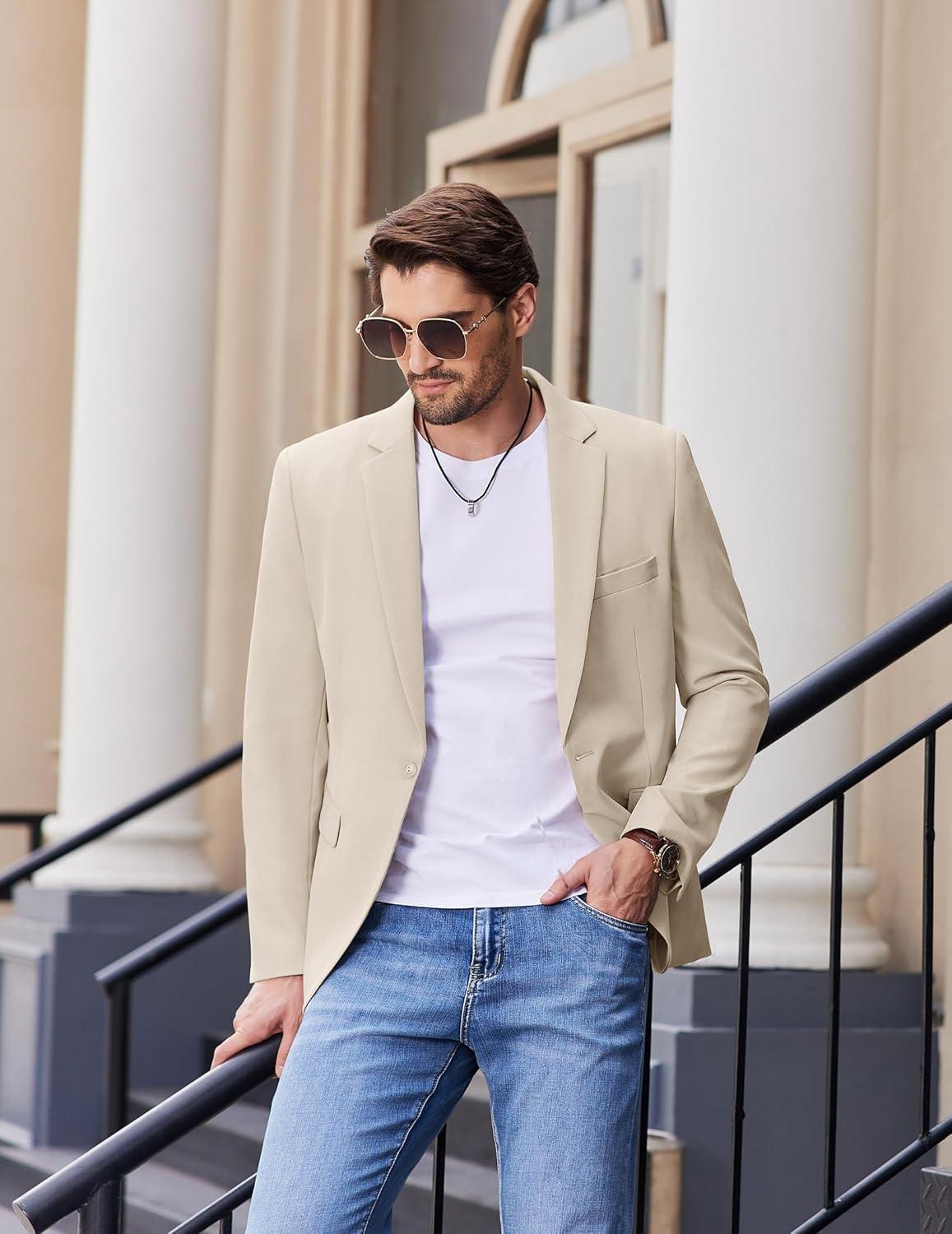 COOFANDY Mens Casual Blazer Slim Fit Sport Coats One Button Stylish Business Suit Jacket(Beige)