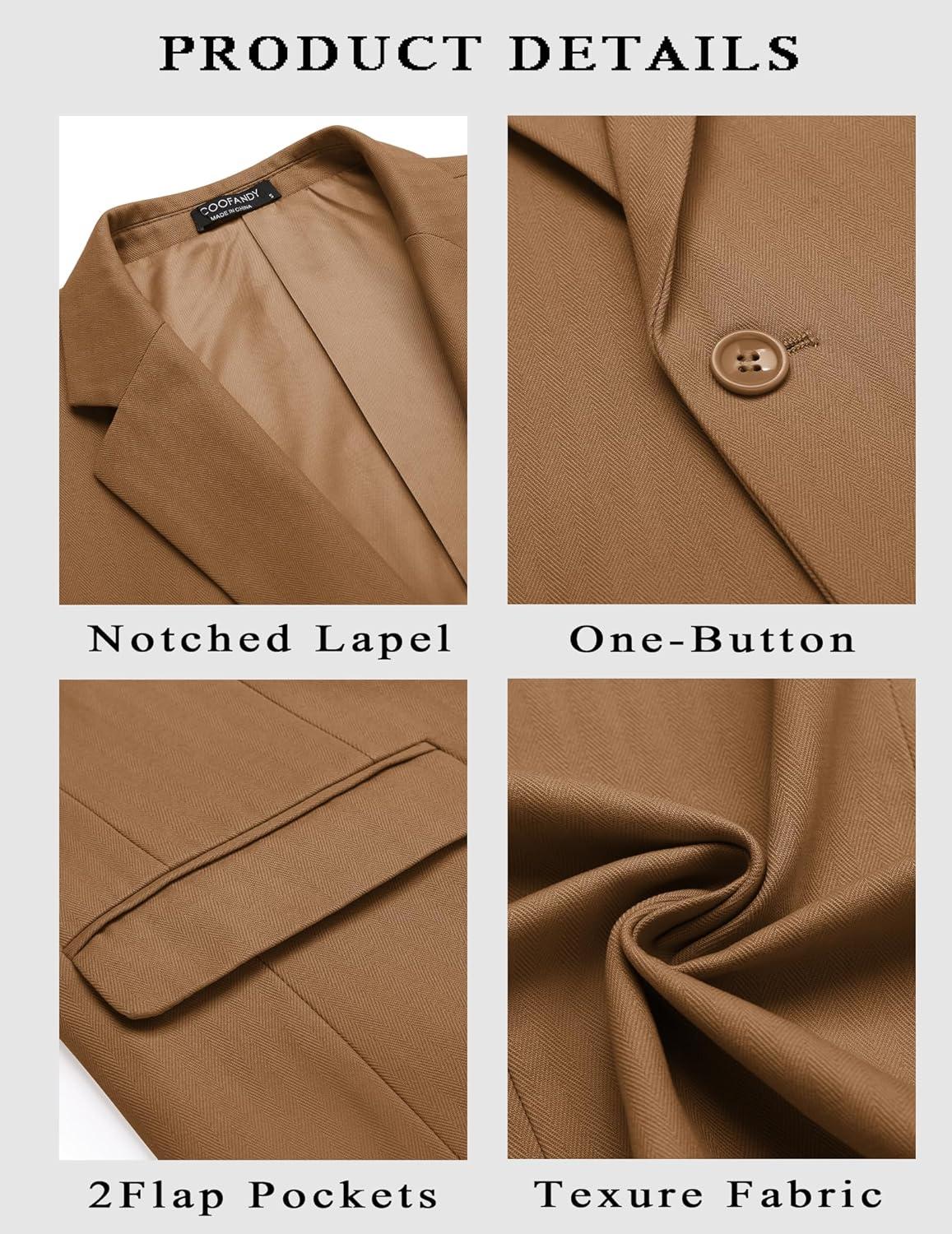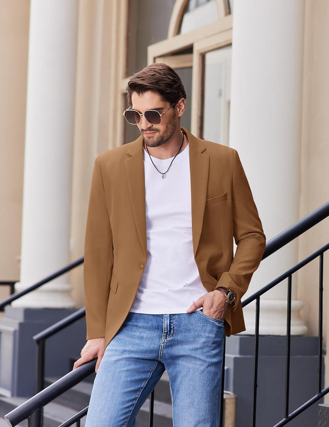 COOFANDY Mens Casual Blazer Slim Fit Sport Coats One Button Stylish Business Suit Jacket(Brown)