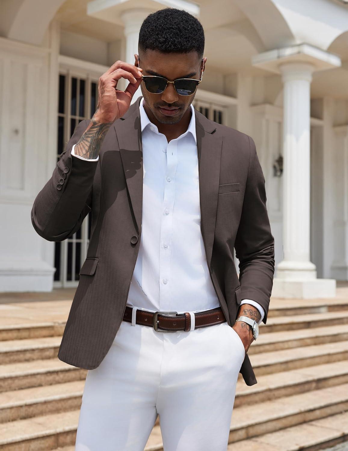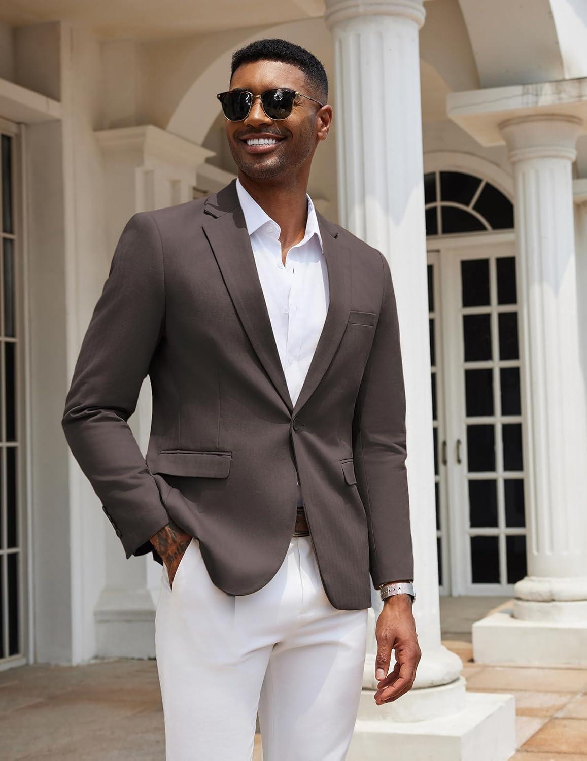COOFANDY Mens Casual Blazer Slim Fit Sport Coats One Button Stylish Business Suit Jacket(Chocolate Dark Grey)