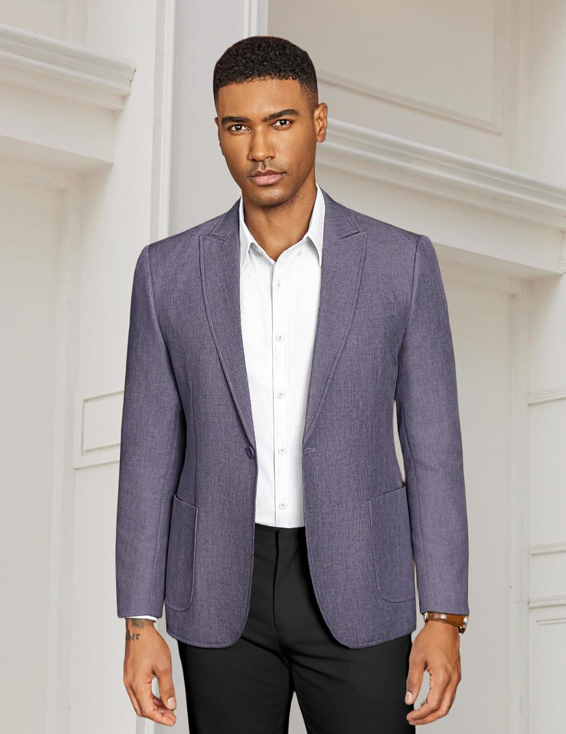 COOFANDY Men’s Casual Blazer Slim Fit Sports Coat One Button Business Retro Suit Jackets for Wedding Party(Blue)