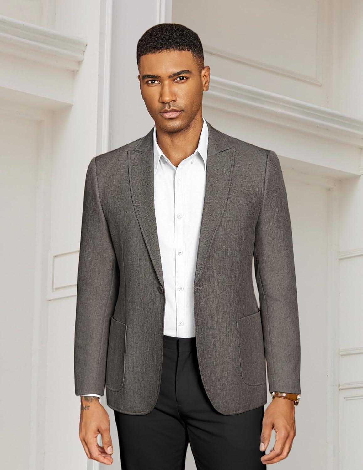 COOFANDY Men’s Casual Blazer Slim Fit Sports Coat One Button Business Retro Suit Jackets for Wedding Party(Deep Grey)