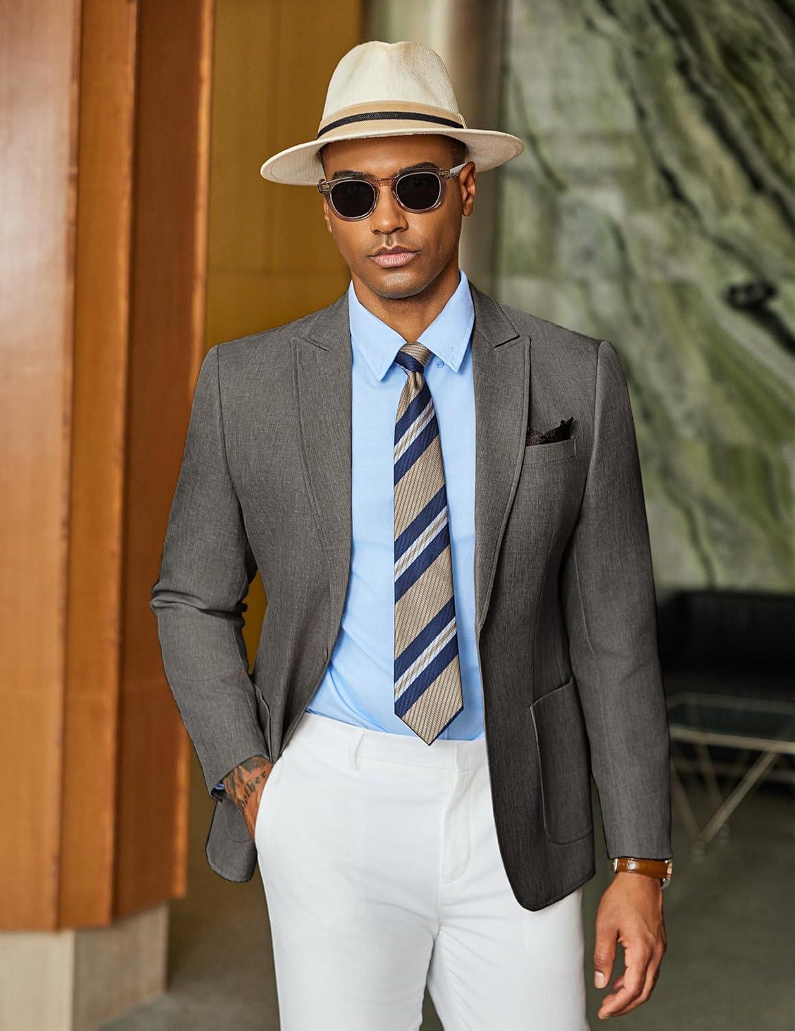 COOFANDY Men’s Casual Blazer Slim Fit Sports Coat One Button Business Retro Suit Jackets for Wedding Party(Grey)