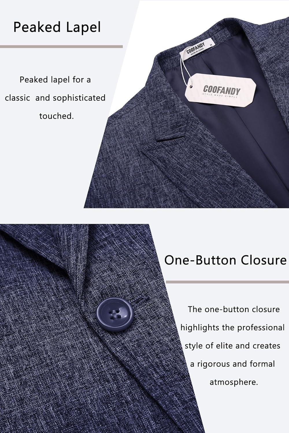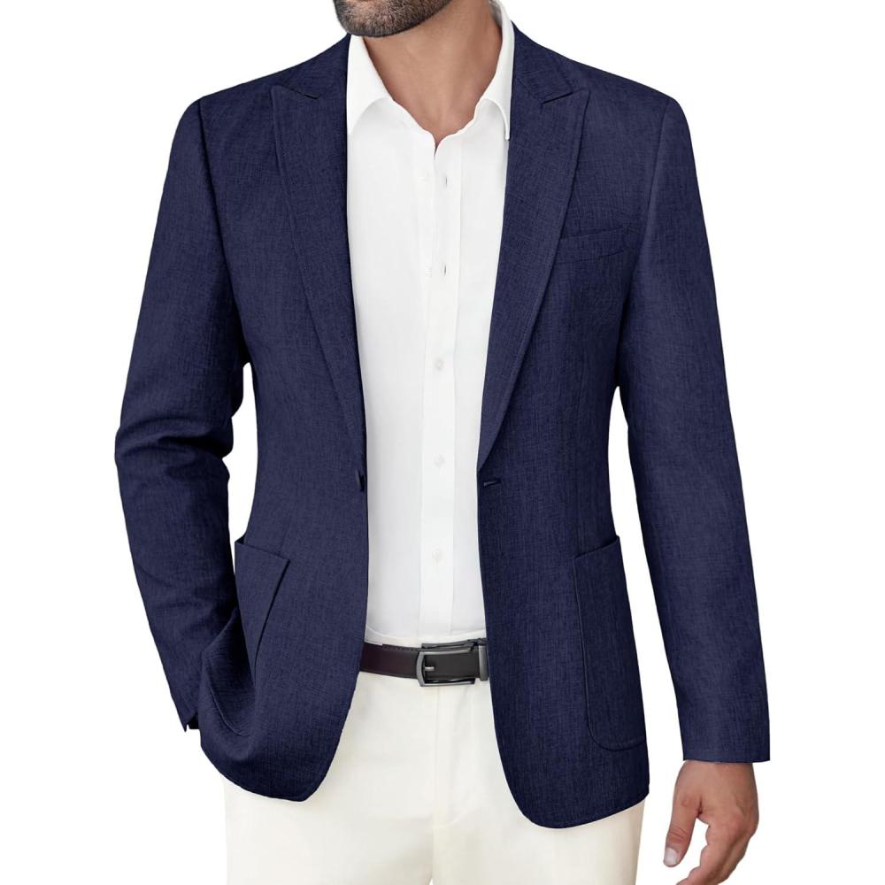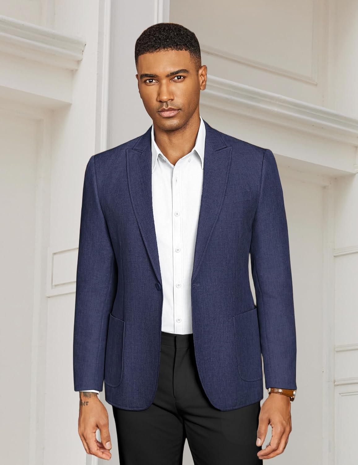 COOFANDY Men’s Casual Blazer Slim Fit Sports Coat One Button Business Retro Suit Jackets for Wedding Party(Navy Blue)