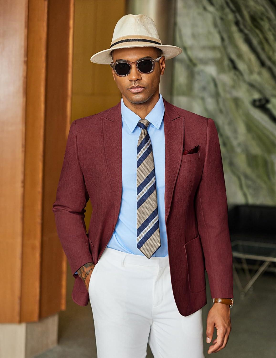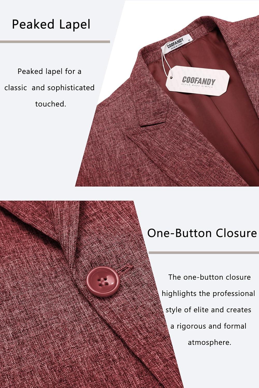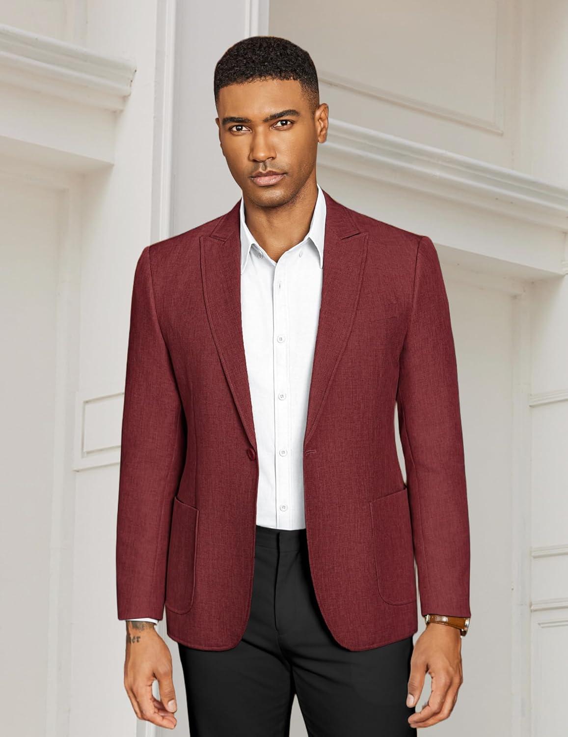 COOFANDY Men’s Casual Blazer Slim Fit Sports Coat One Button Business Retro Suit Jackets for Wedding Party(Red)