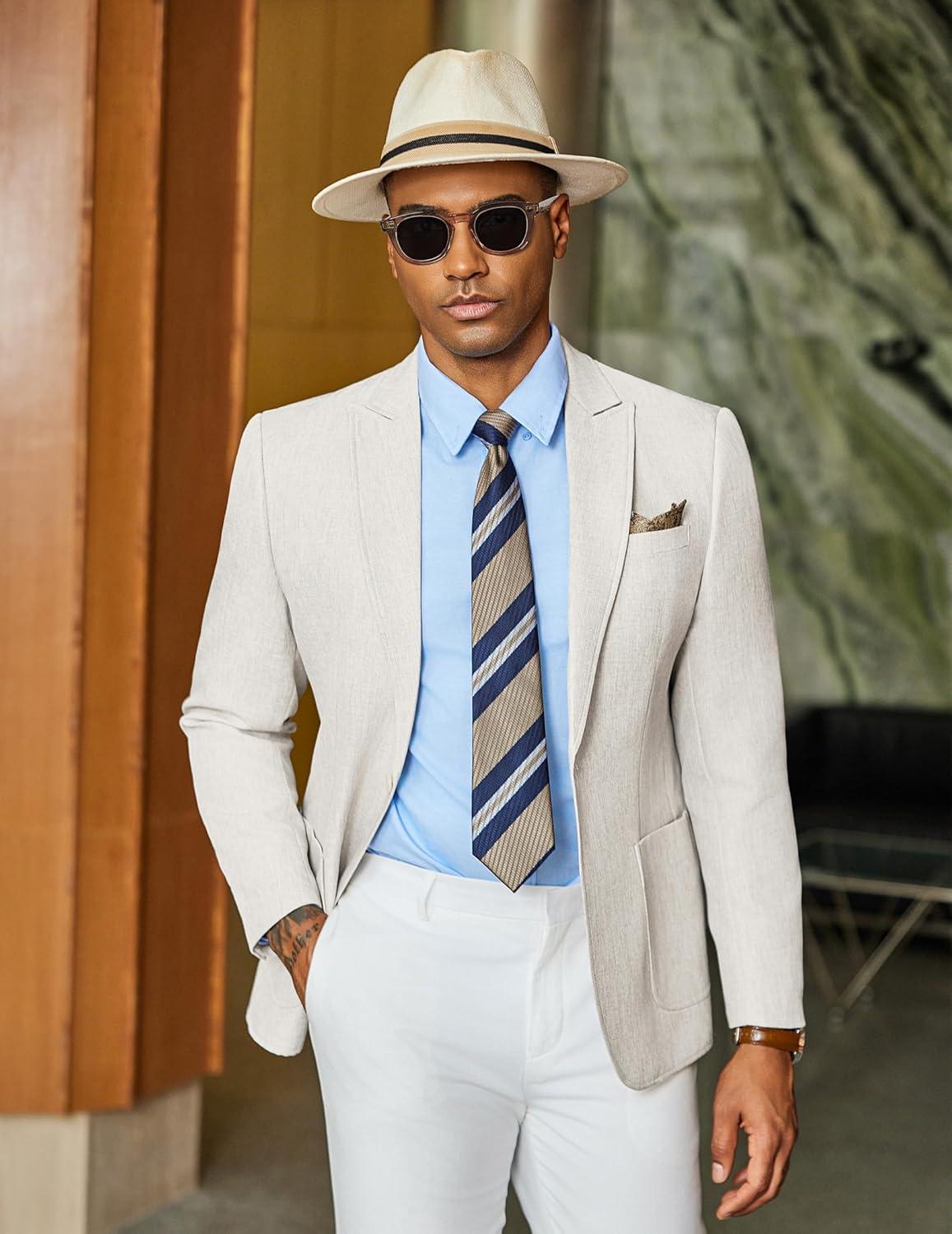 COOFANDY Men’s Casual Blazer Slim Fit Sports Coat One Button Business Retro Suit Jackets for Wedding Party(White)