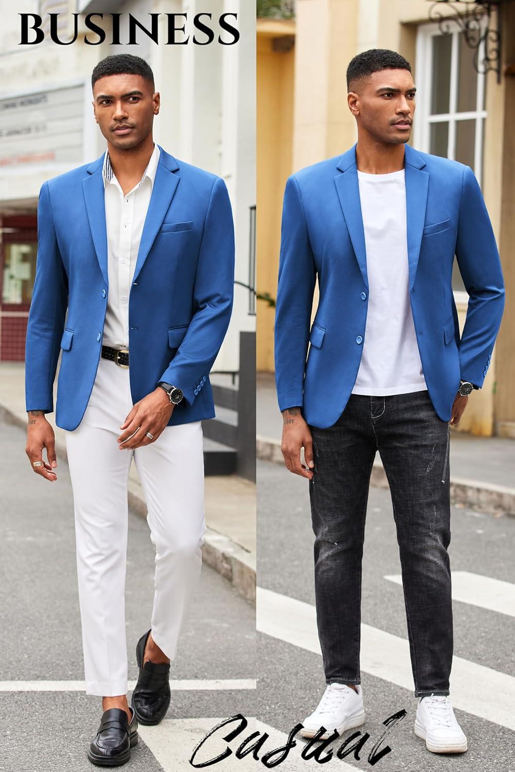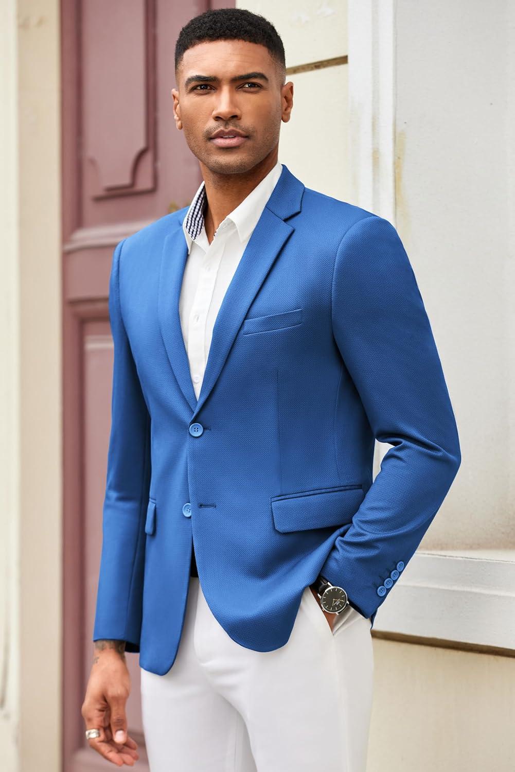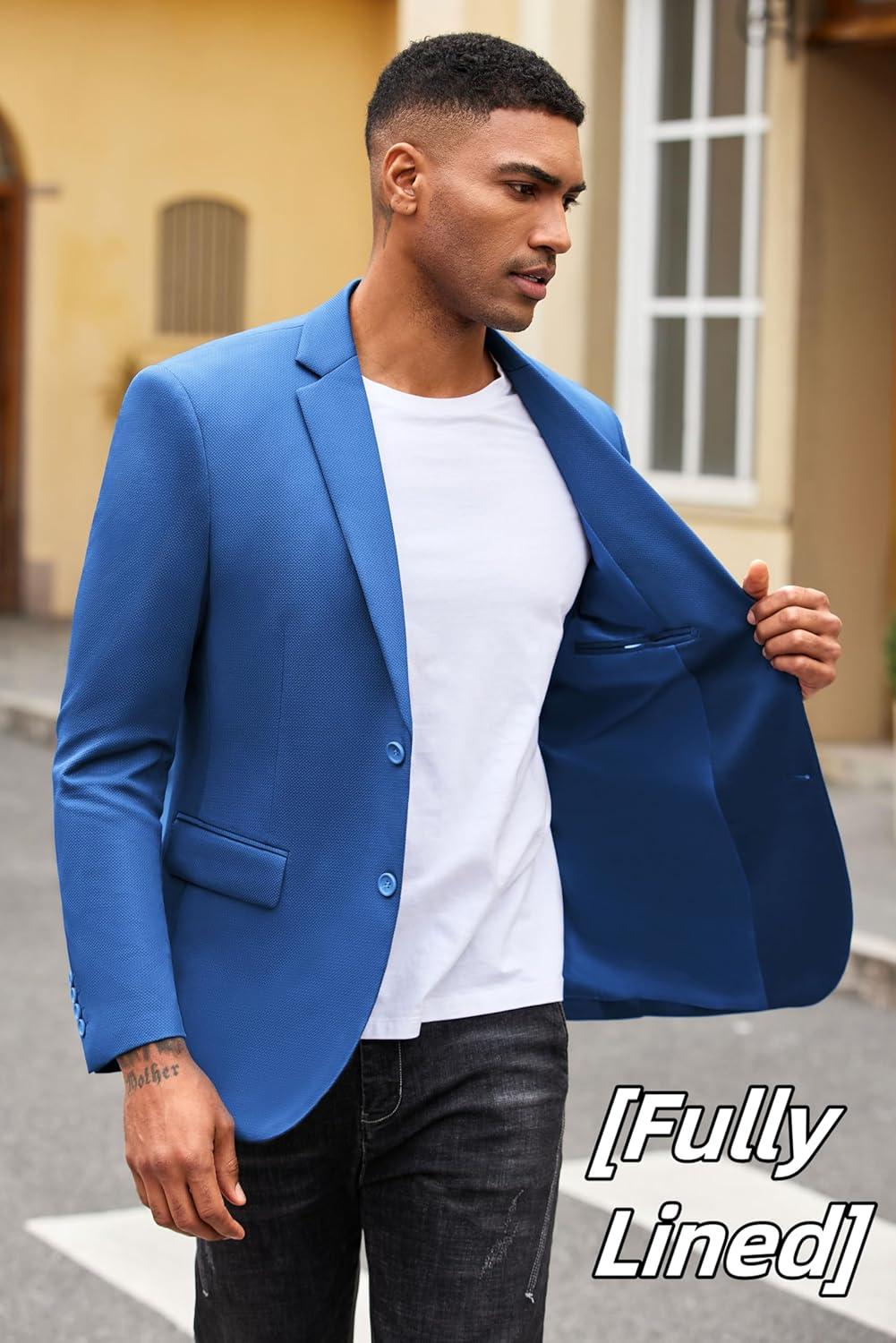 COOFANDY Mens Casual Blazer Slim Fit Suit Jacket Lightweight Knit Sport Coat Two Button Blazer Jacket(Royal Blue)