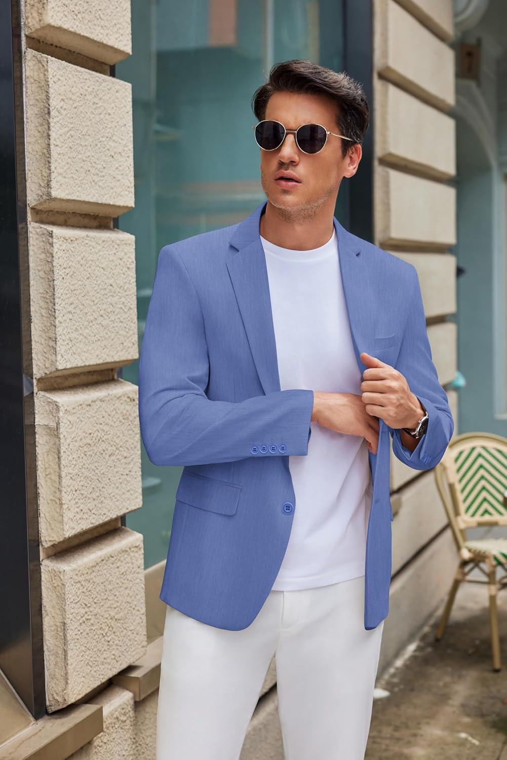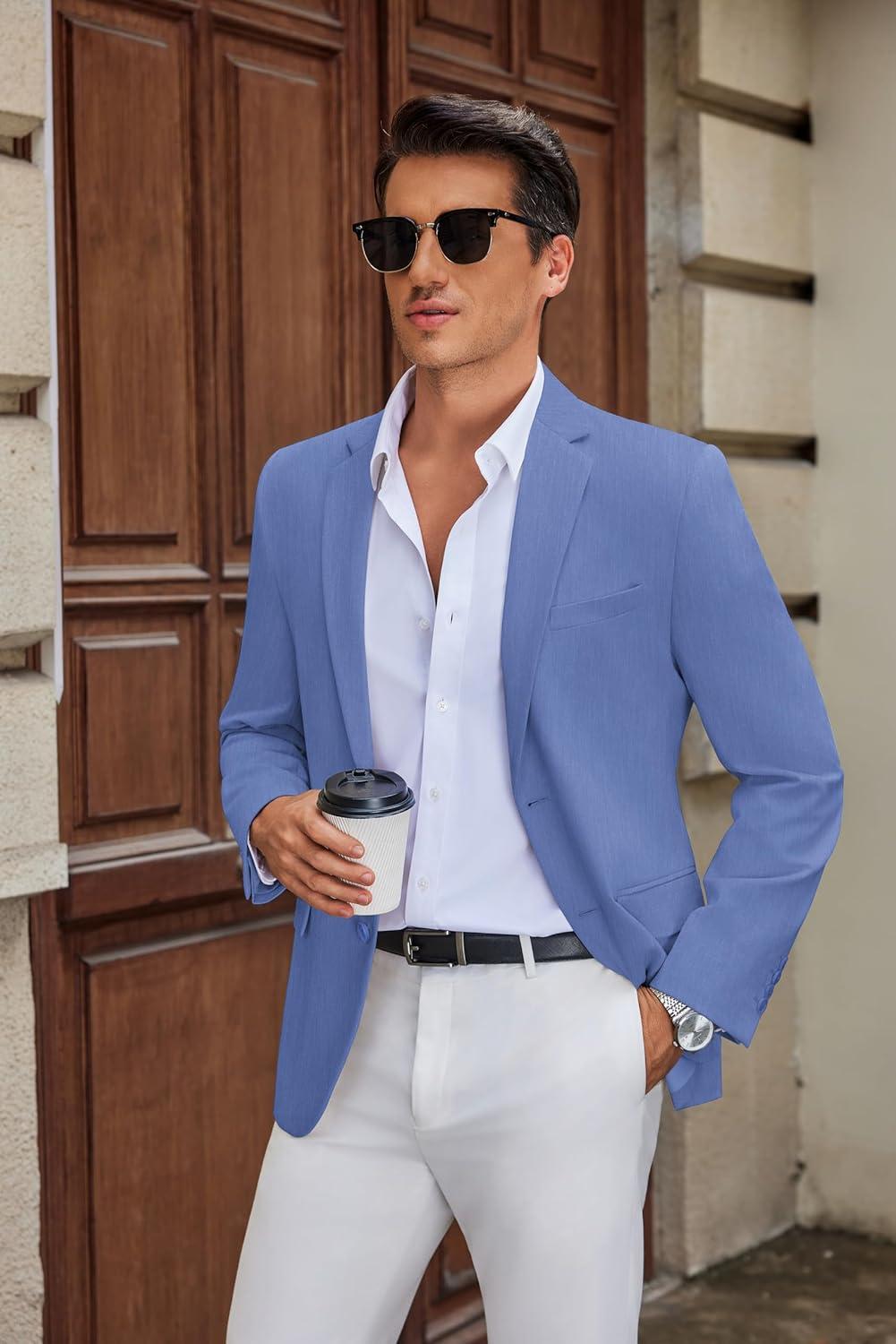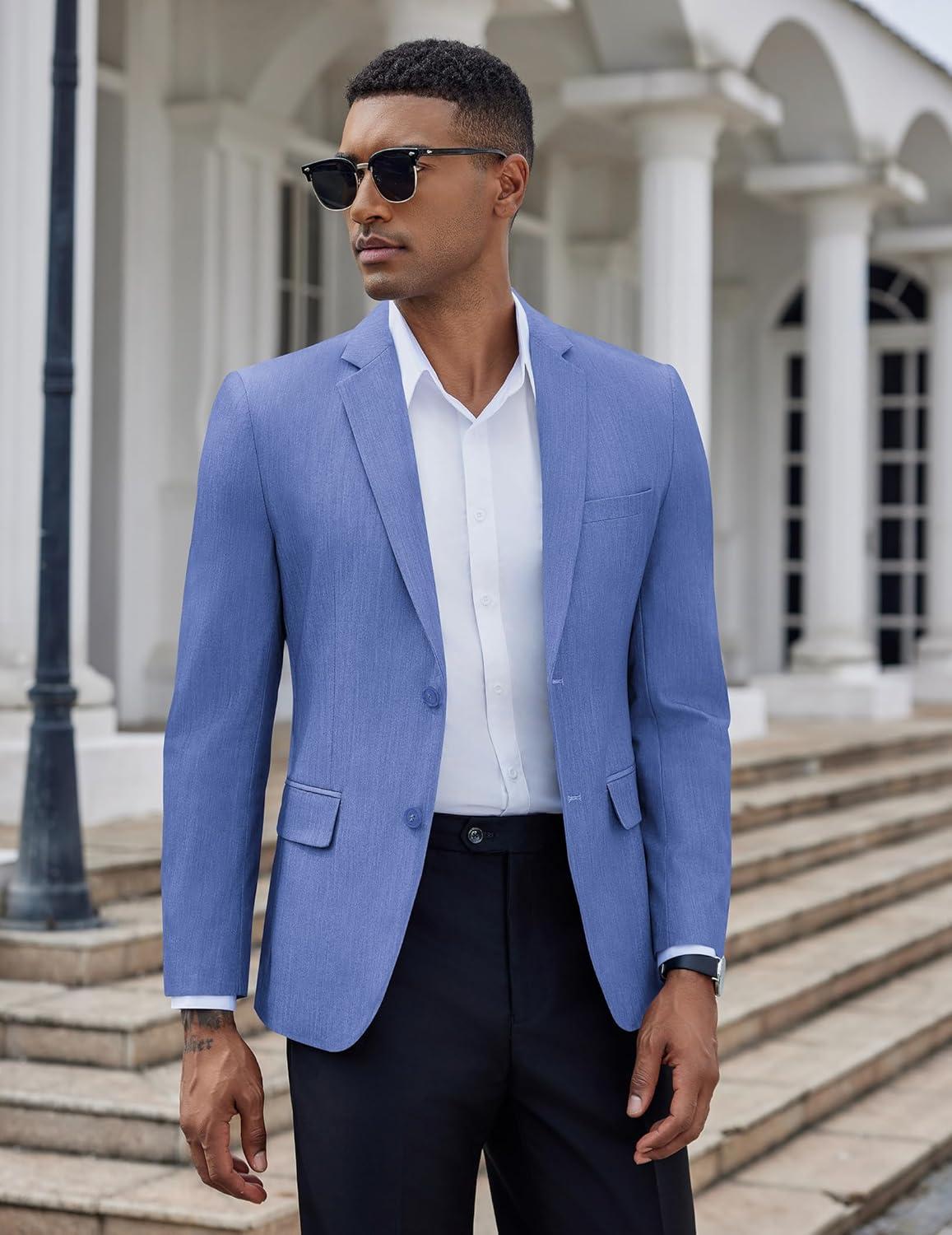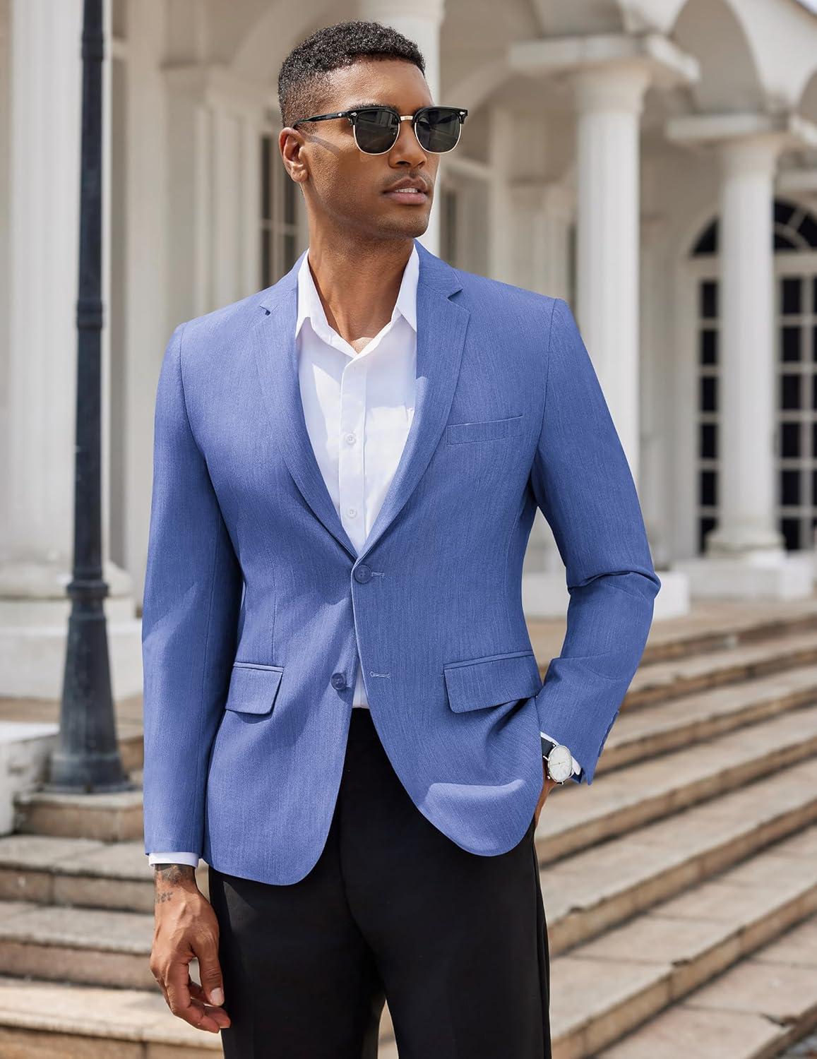 COOFANDY Mens Casual Blazer Slim Fit Suit Jacket Two Button Lightweight Sport Coat(Light Royal Blue)