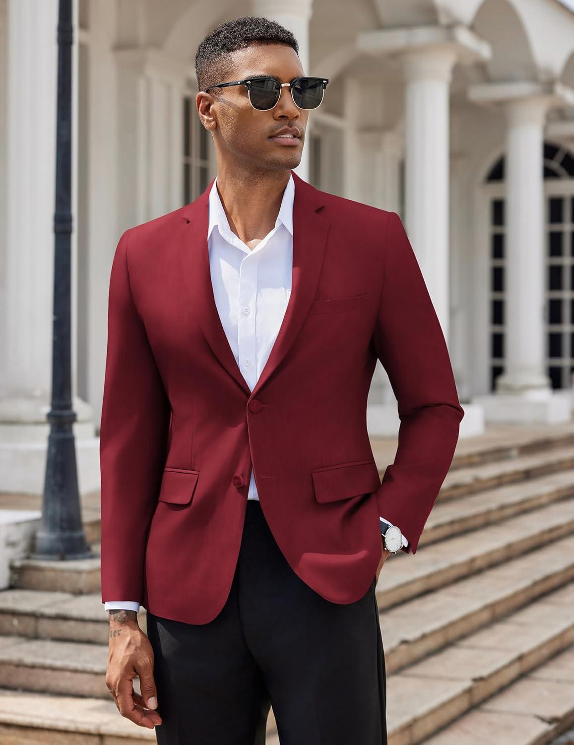 COOFANDY Mens Casual Blazer Slim Fit Suit Jacket Two Button Lightweight Sport Coat(Wine Red)