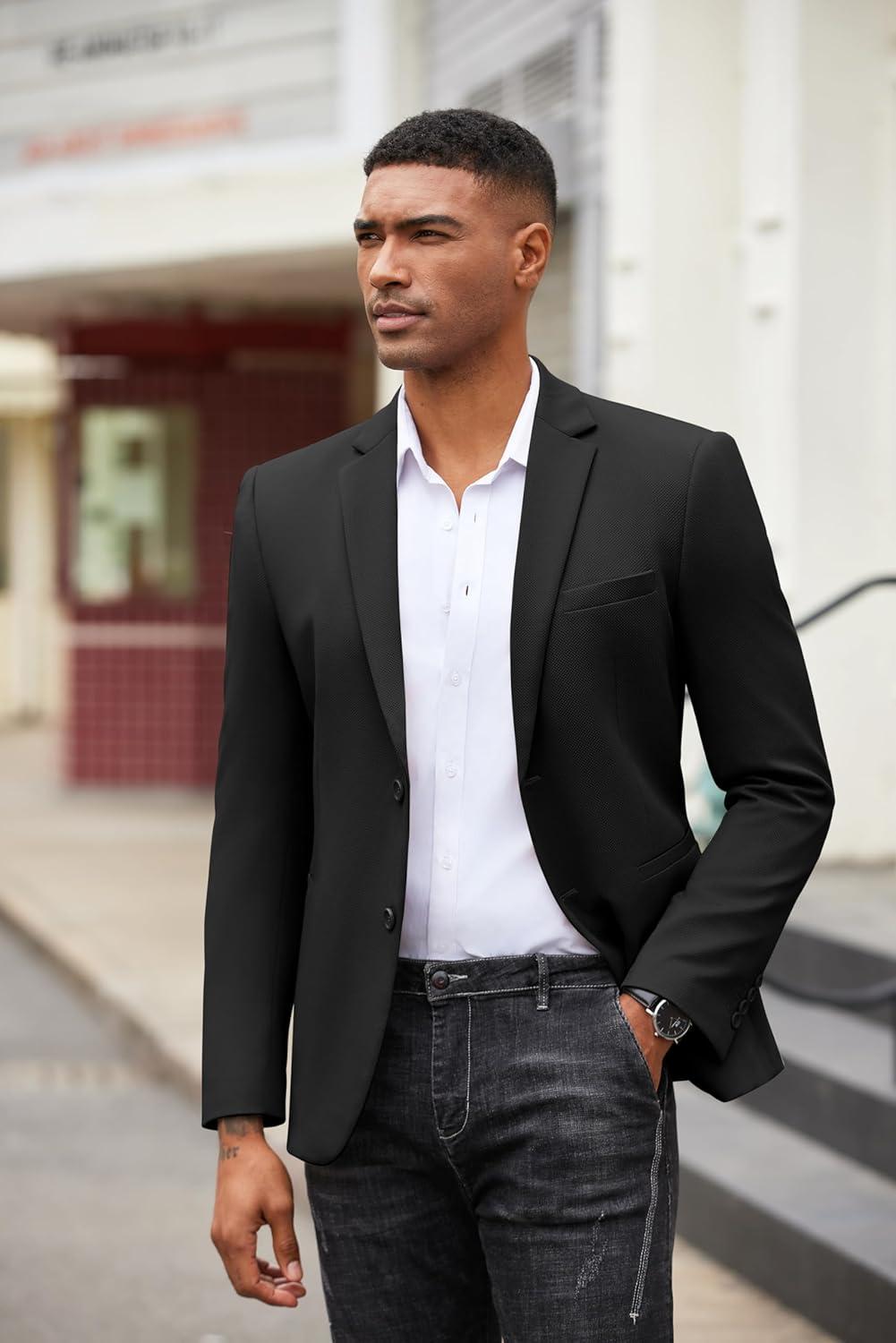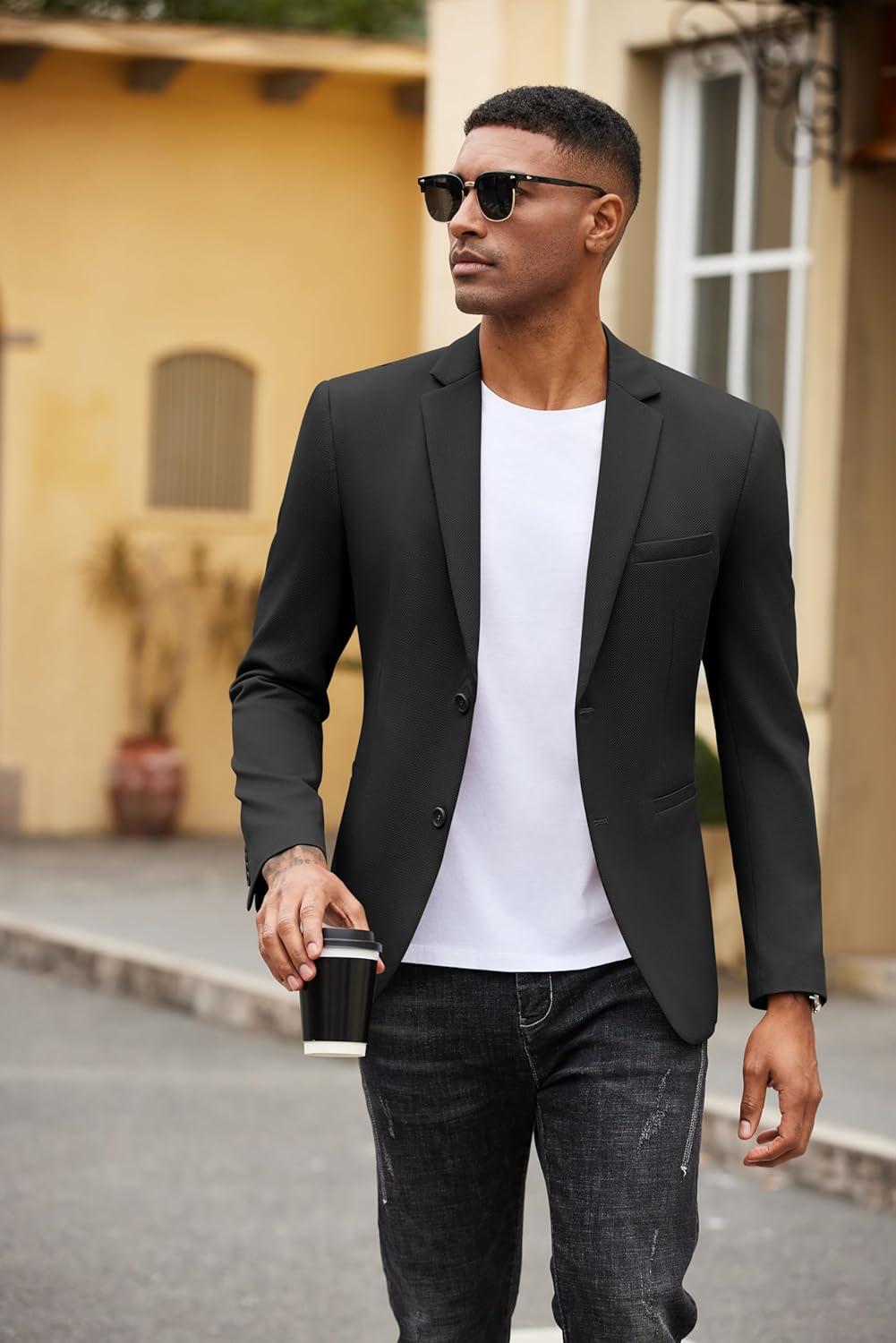 COOFANDY Men's Casual Blazer Slim Fit Suit Jackets Two Button Lightweight Knit Sport Coat(Black)
