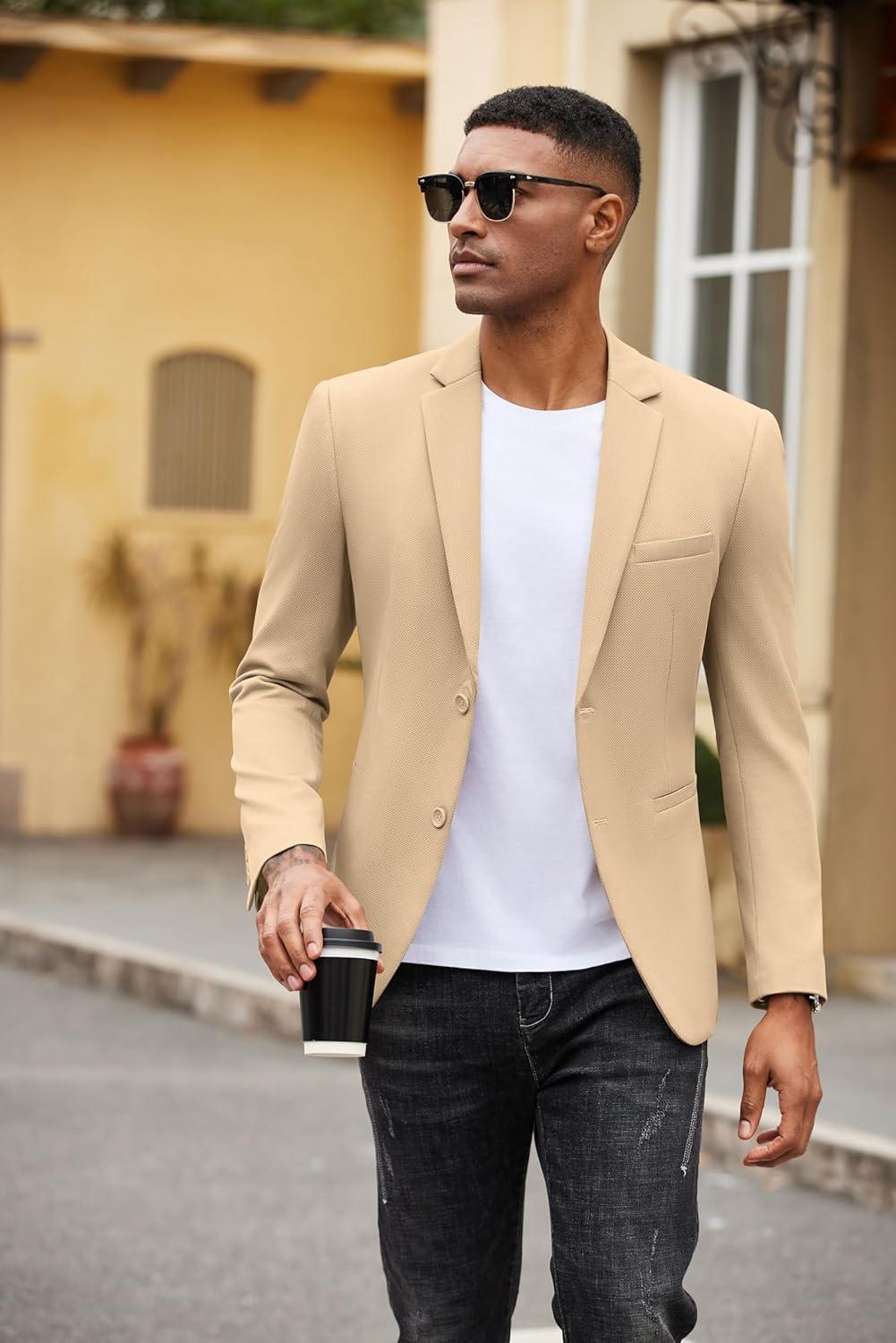 COOFANDY Men's Casual Blazer Slim Fit Suit Jackets Two Button Lightweight Knit Sport Coat(Khaki)
