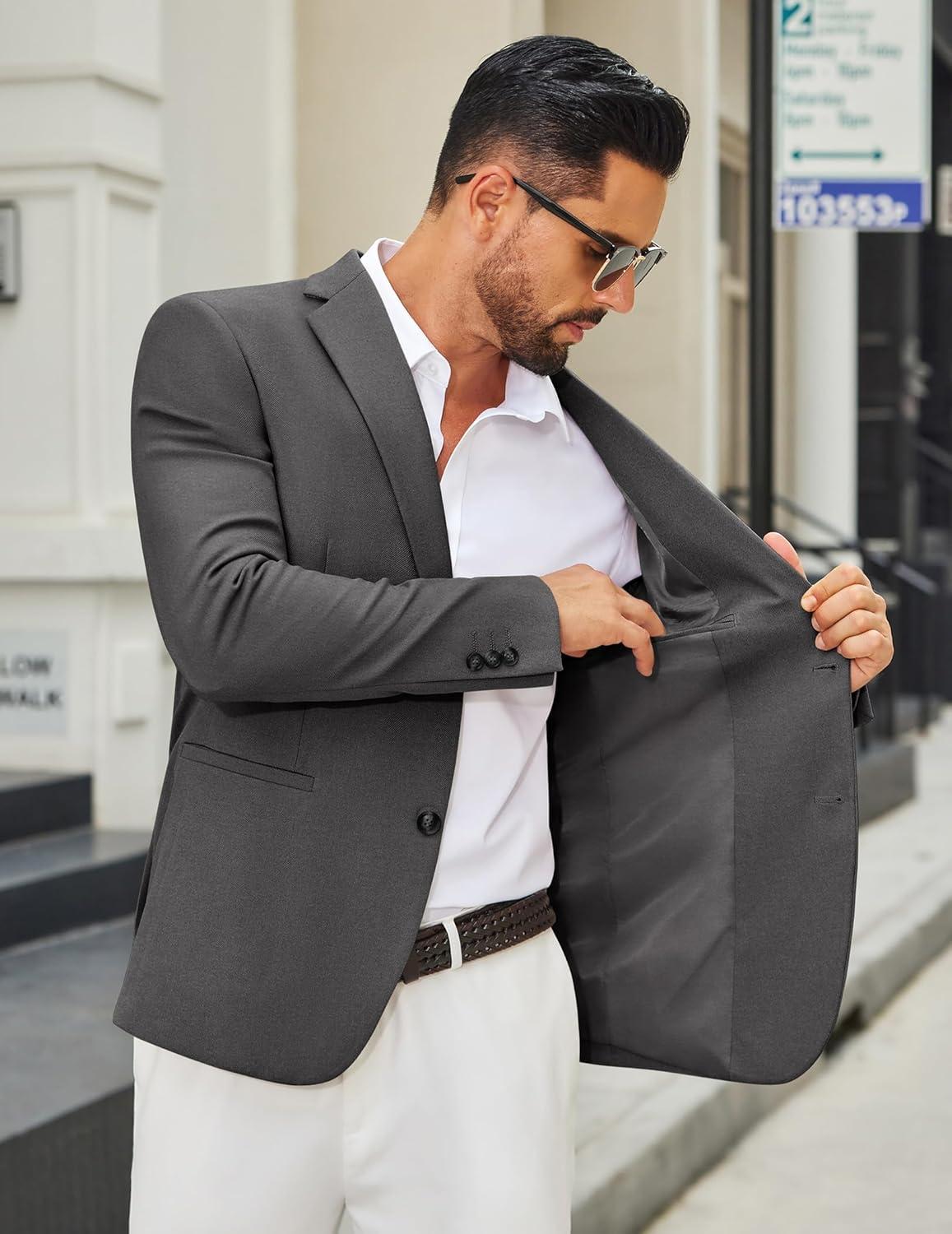 COOFANDY Men’s Casual Blazer Slim Fit Two Buttons Sport Coat Lightweight Suit Jacket(Grey)