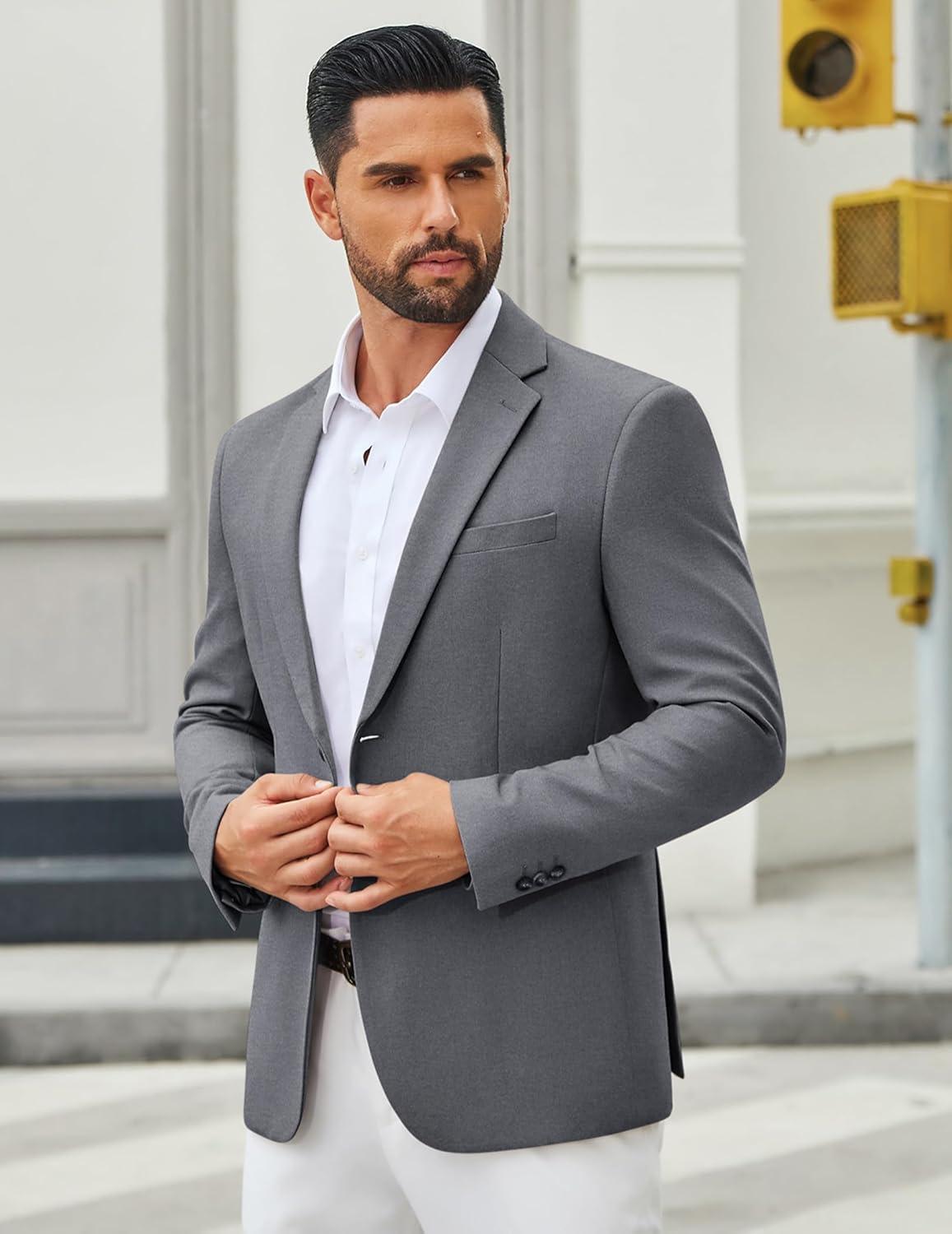 COOFANDY Men’s Casual Blazer Slim Fit Two Buttons Sport Coat Lightweight Suit Jacket(Grey)