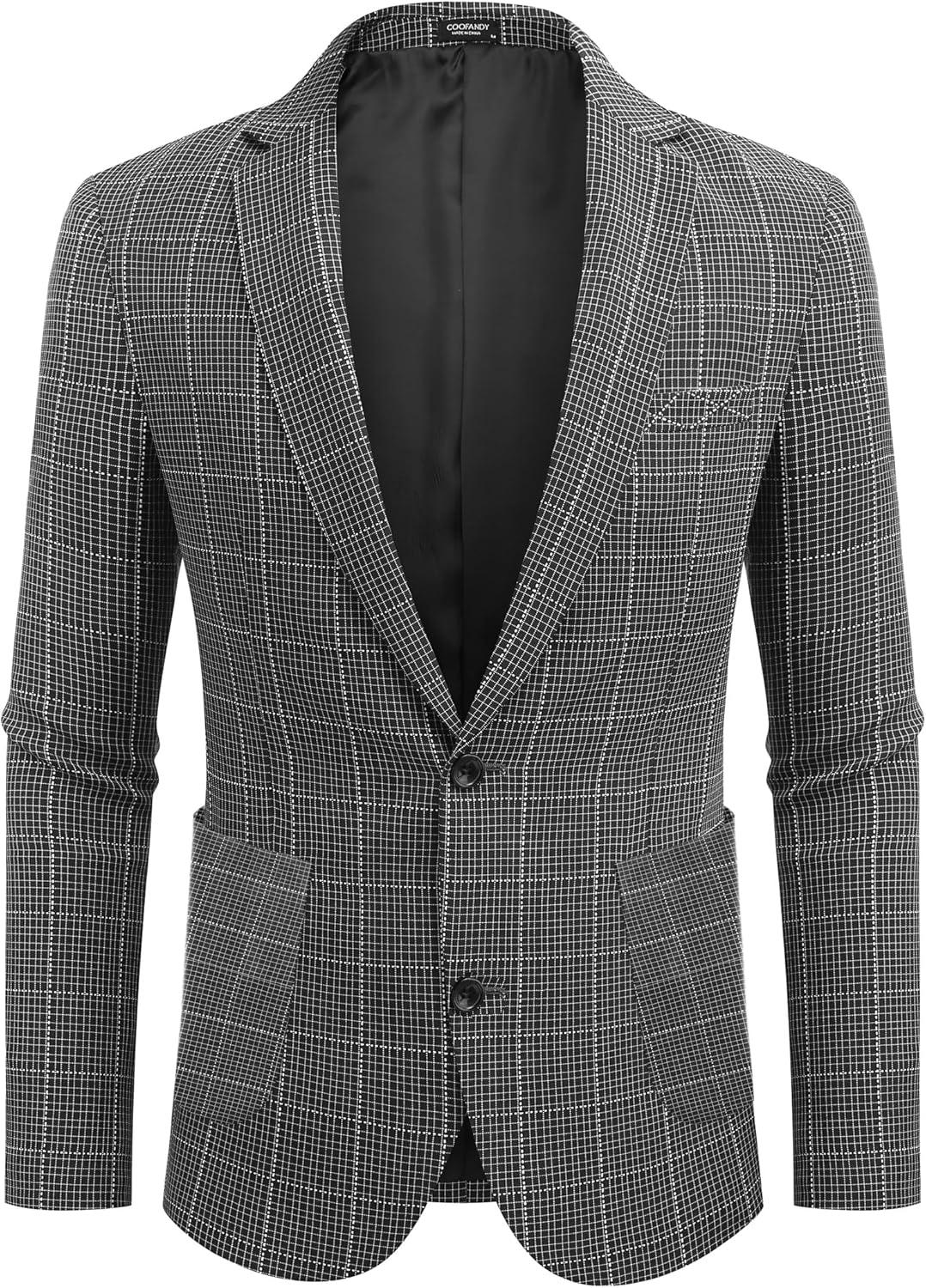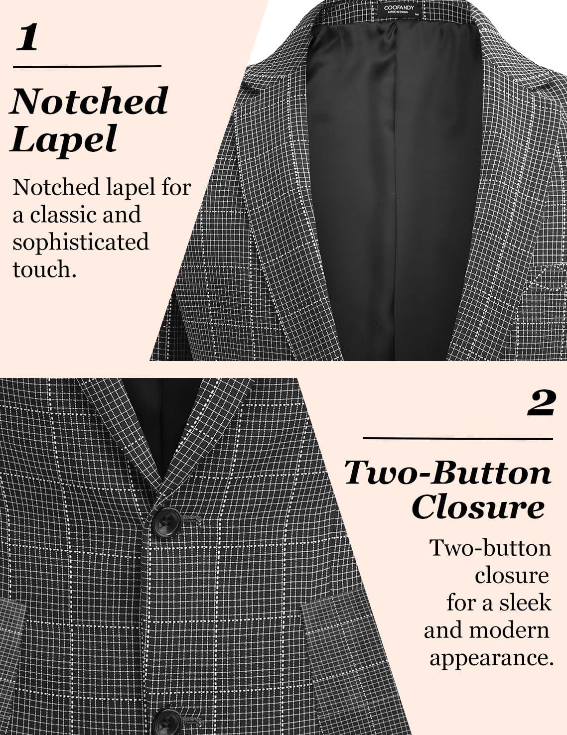COOFANDY Mens Casual Blazer Sport Coat Lightweight Two Button Business Suit Jackets(Fine Plaid Blazer- Black)