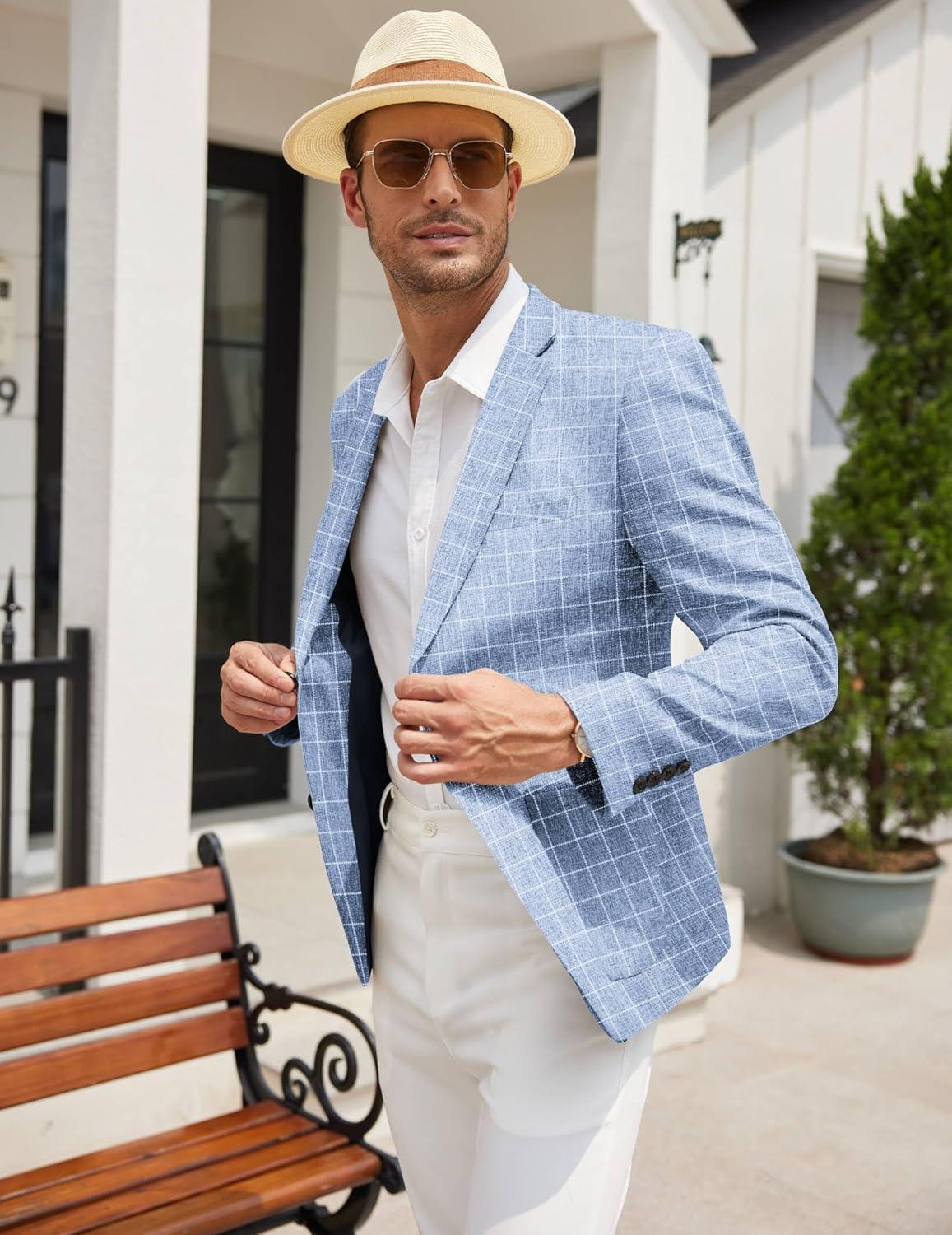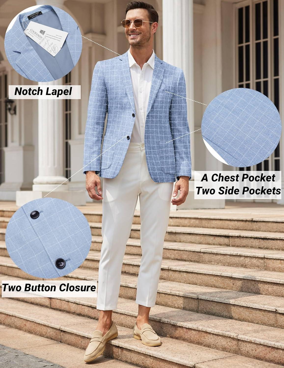 imageCOOFANDY Mens Casual Blazer Sport Coat Lightweight Two Button Business Suit JacketsPlaid Blazer Sky Blue