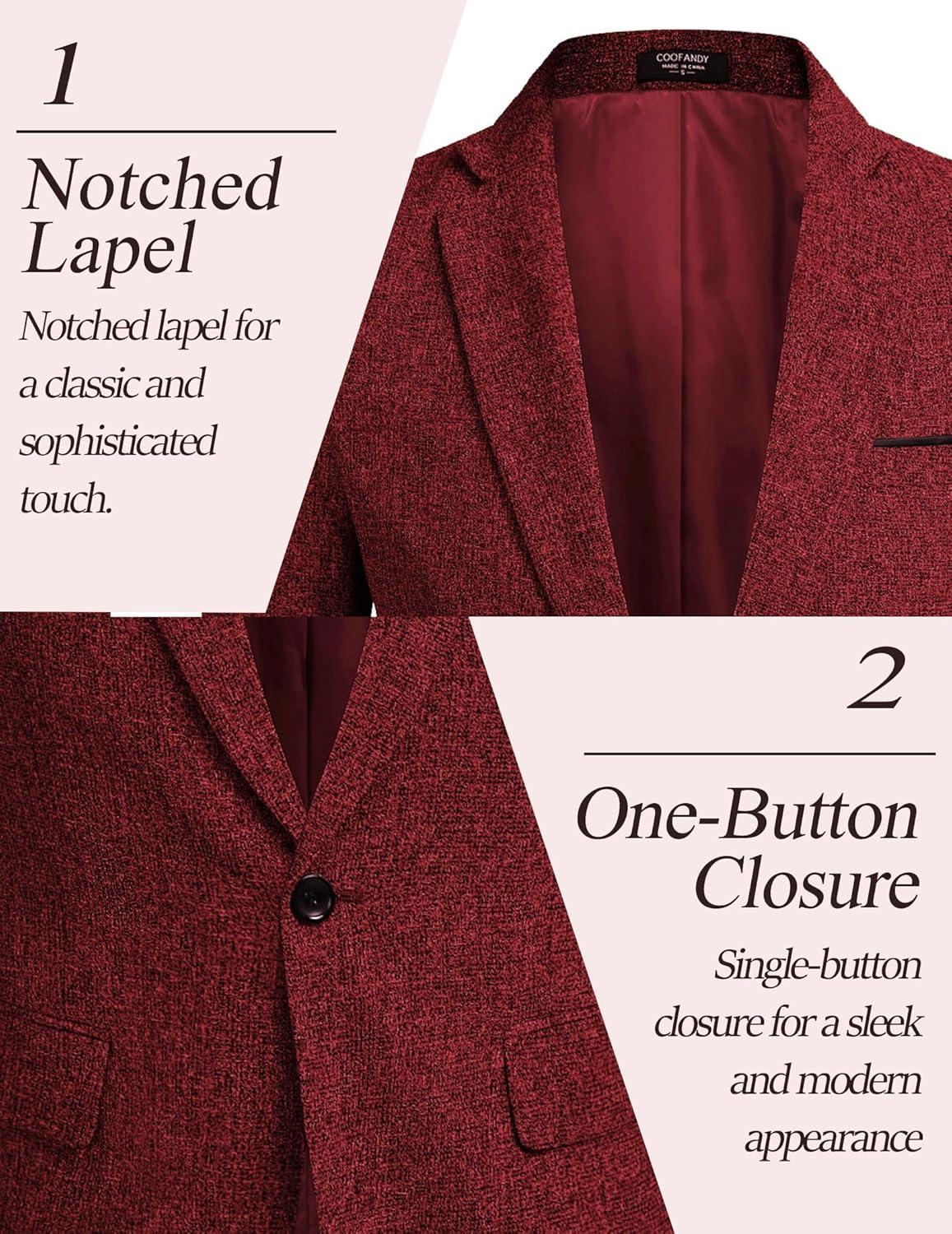 COOFANDY Men's Casual Blazer Suit Jackets Slim Fit One Button Business Sport Coats(2 - Wine Red)