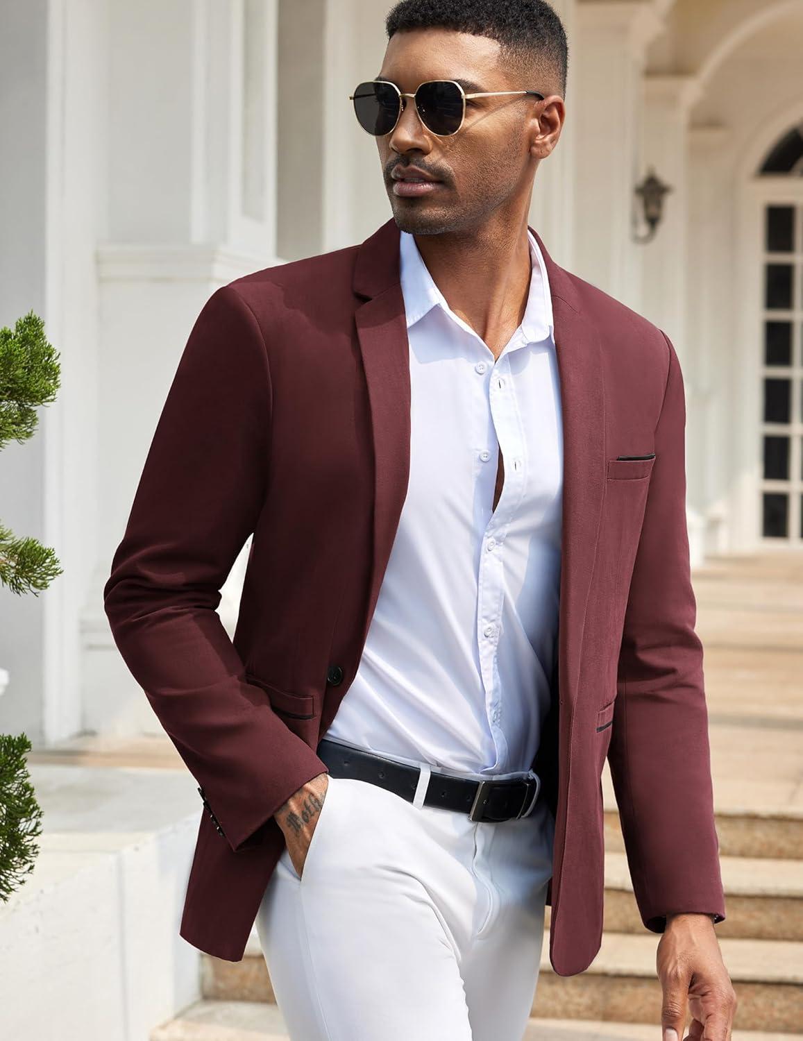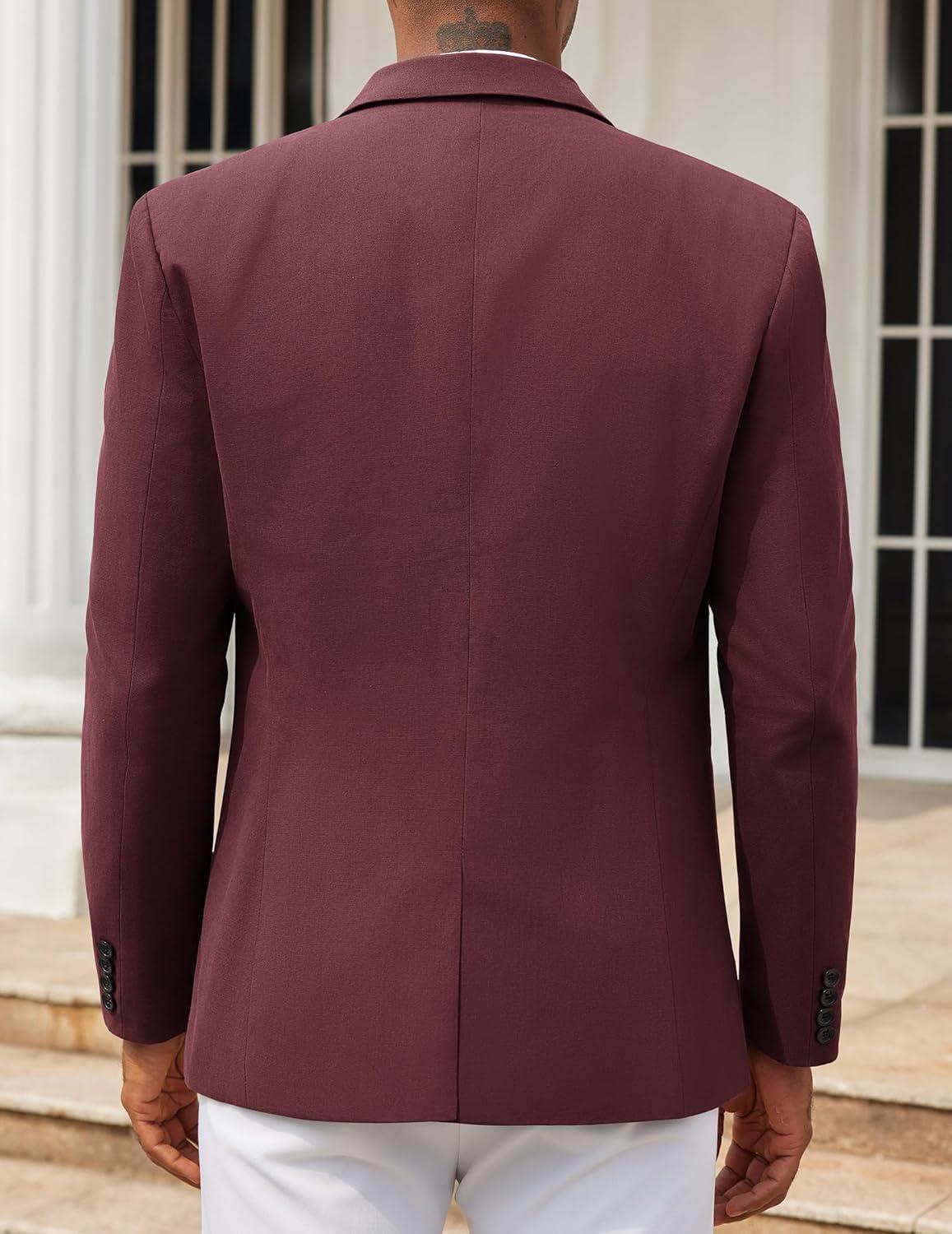 COOFANDY Men's Casual Blazers Sport Coats Slim Fit Cotton Sport Jackets 1 Button Lightweight Suit Jackets(B- Wine Red)