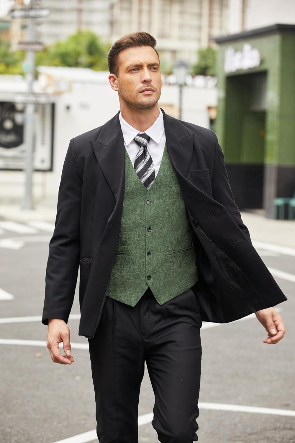 COOFANDY Men's Casual Business Vests Lightweight Waistcoat Slim Fit Suit Vest(Army Green)