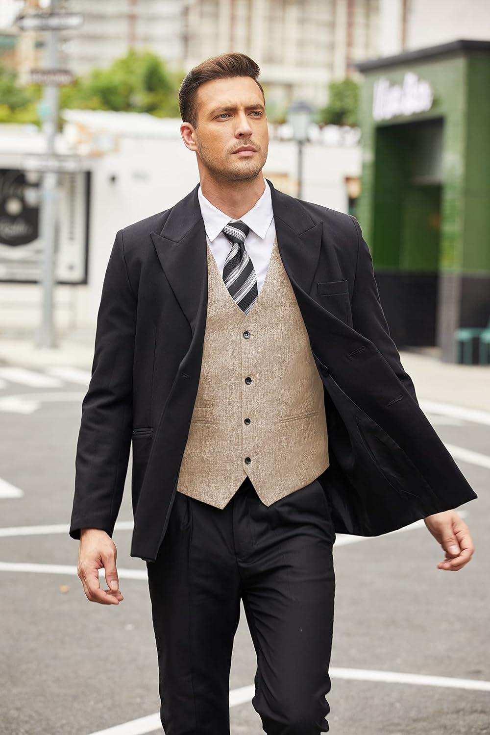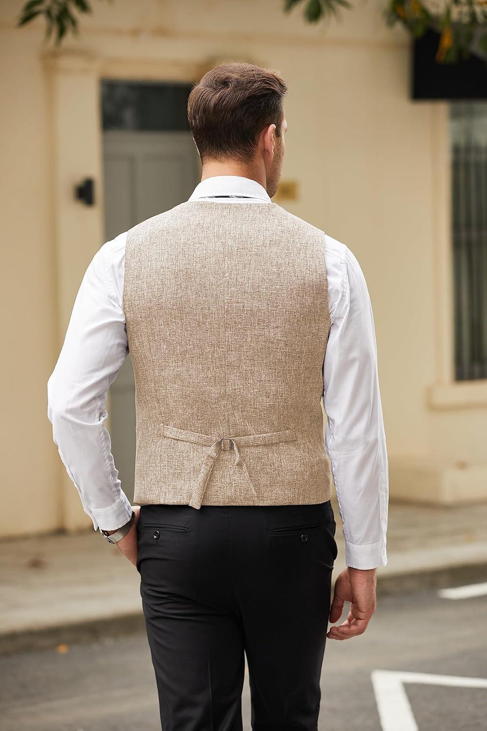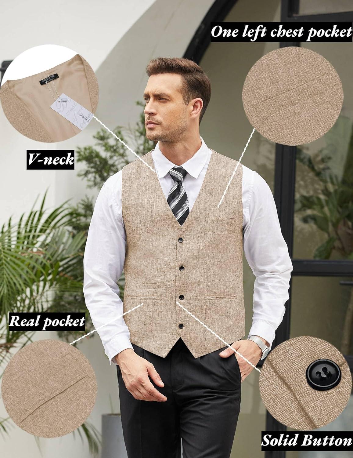 COOFANDY Men’s Casual Business Vests Lightweight Waistcoat Slim Fit Suit Vest(Beige)