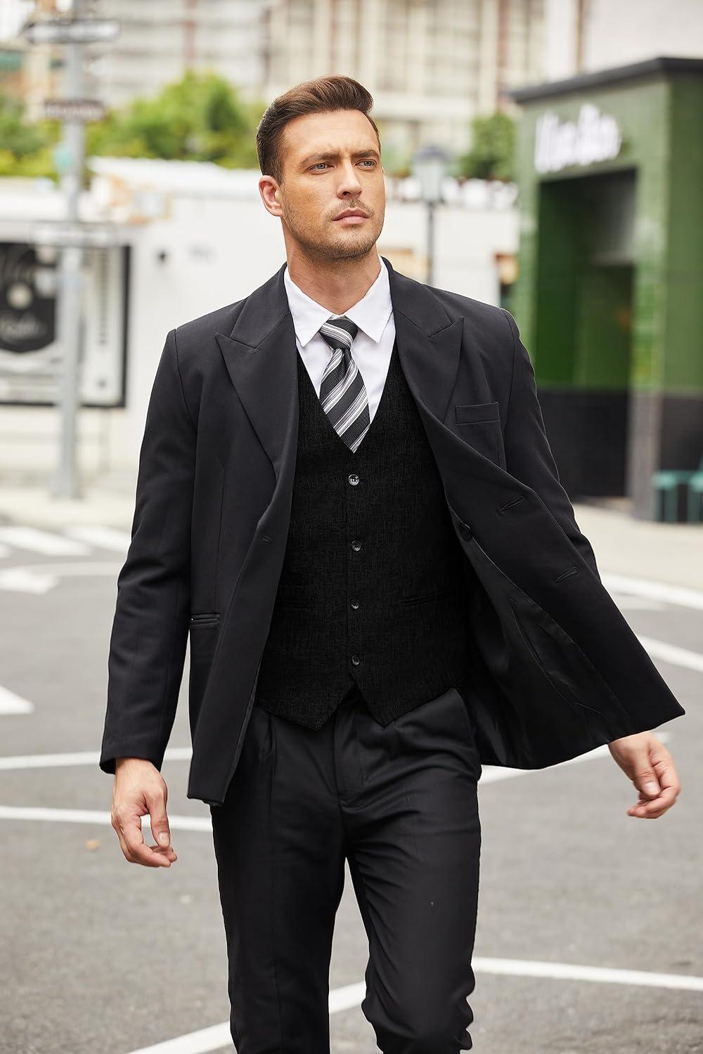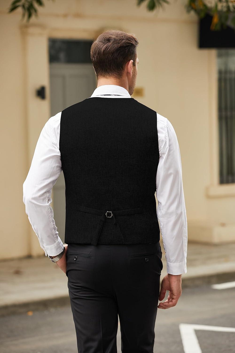 COOFANDY Men’s Casual Business Vests Lightweight Waistcoat Slim Fit Suit Vest(Black B)