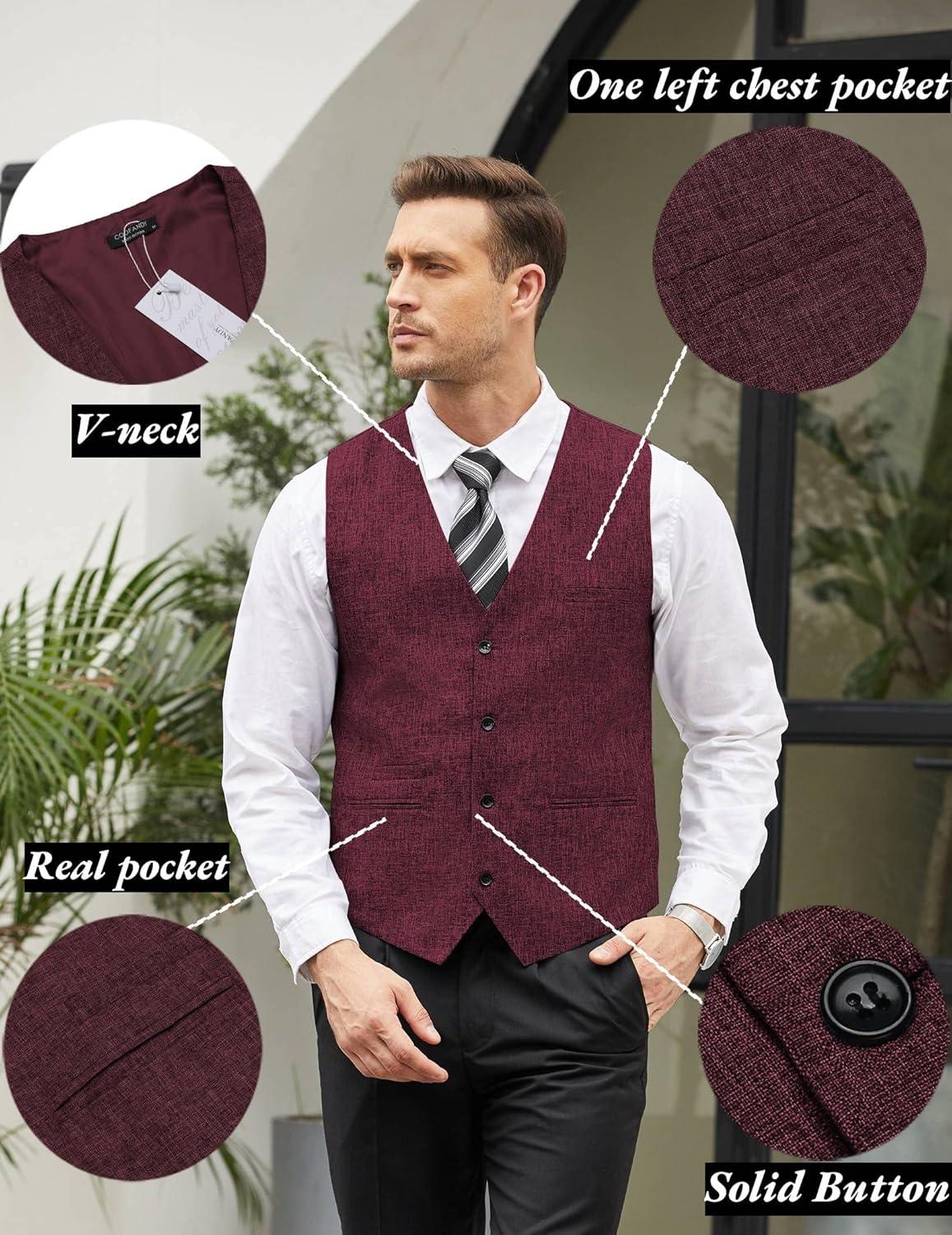 COOFANDY Men's Casual Business Vests Lightweight Waistcoat Slim Fit Suit Vest(Burgundy)