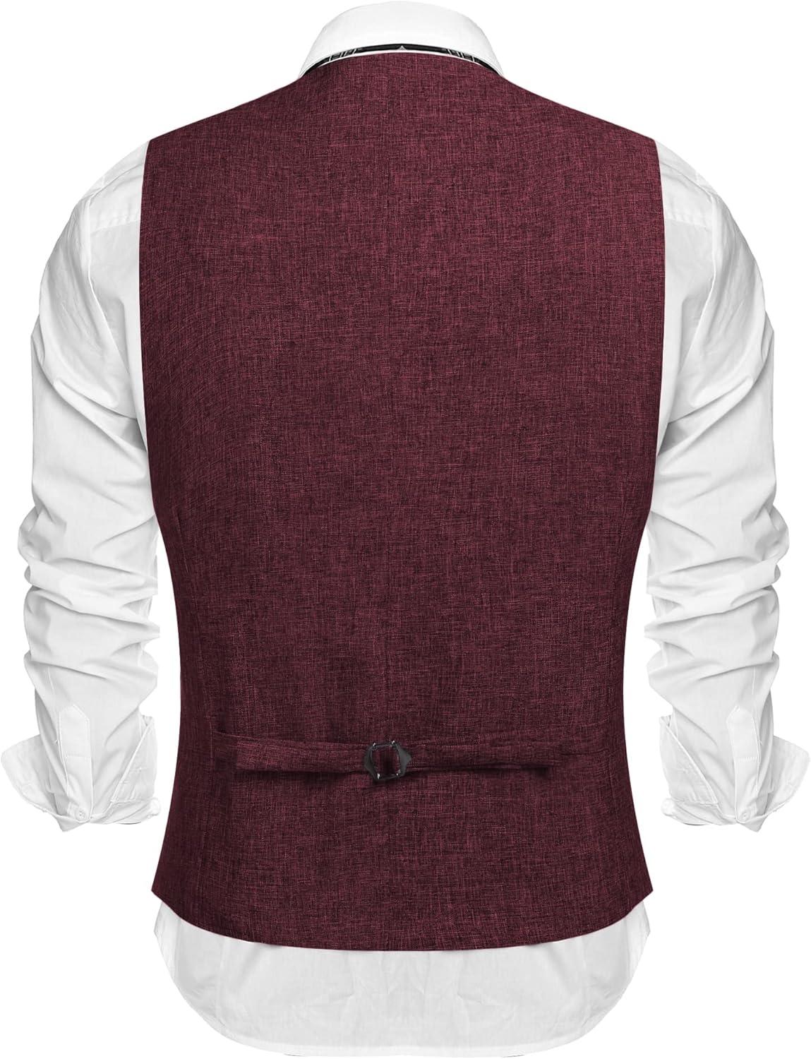 imageCOOFANDY Mens Casual Business Vests Lightweight Waistcoat Slim Fit Suit VestBurgundy