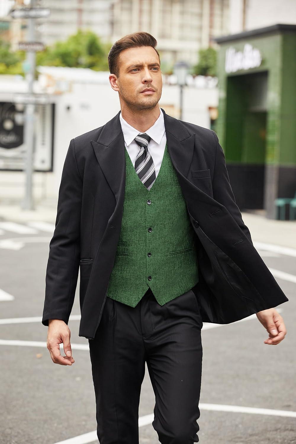 imageCOOFANDY Mens Casual Business Vests Lightweight Waistcoat Slim Fit Suit VestGreen