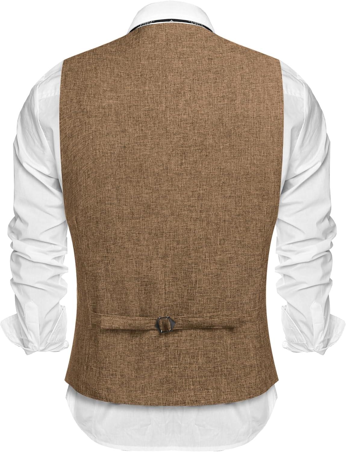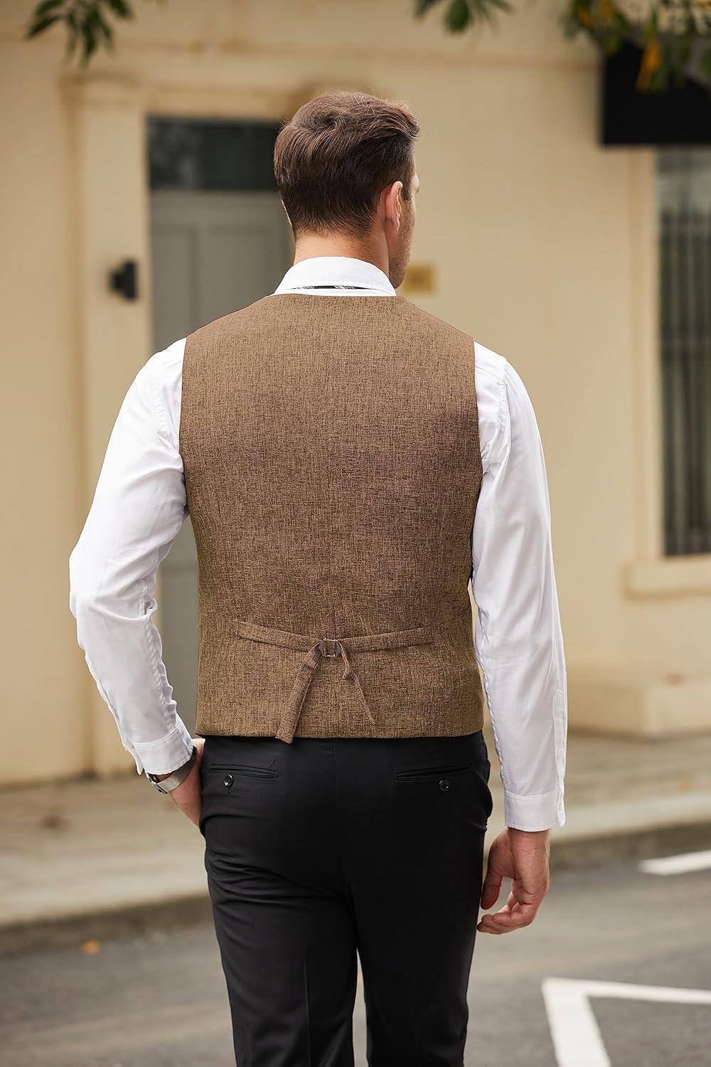 COOFANDY Men’s Casual Business Vests Lightweight Waistcoat Slim Fit Suit Vest(Light Brown)
