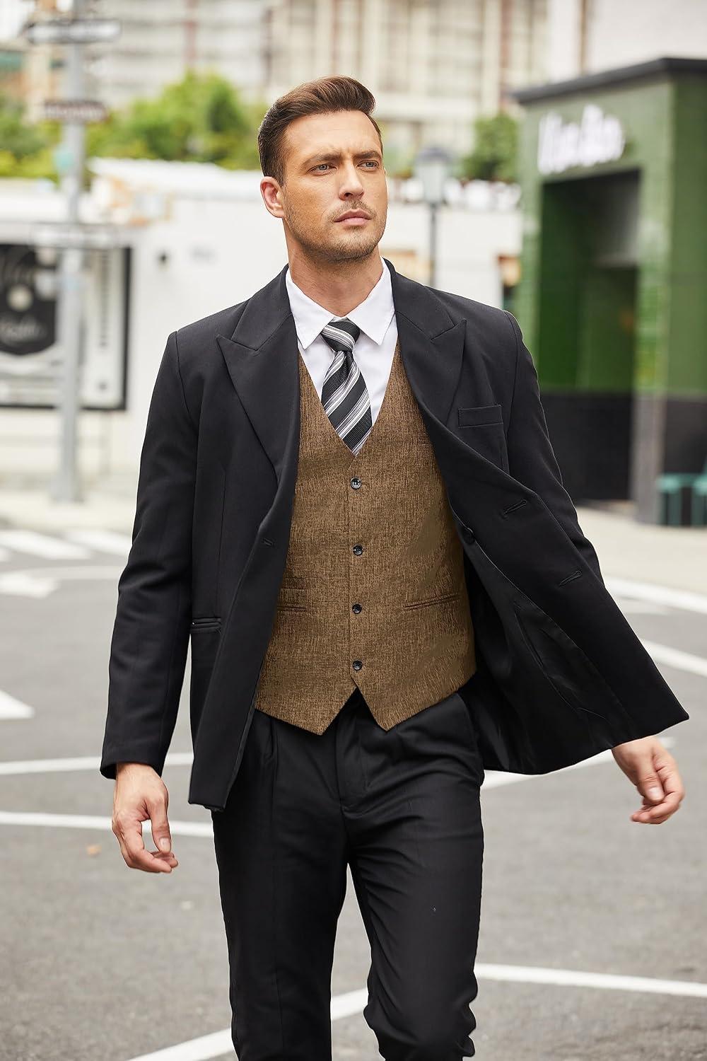 COOFANDY Men's Casual Business Vests Lightweight Waistcoat Slim Fit Suit Vest(Light Brown)