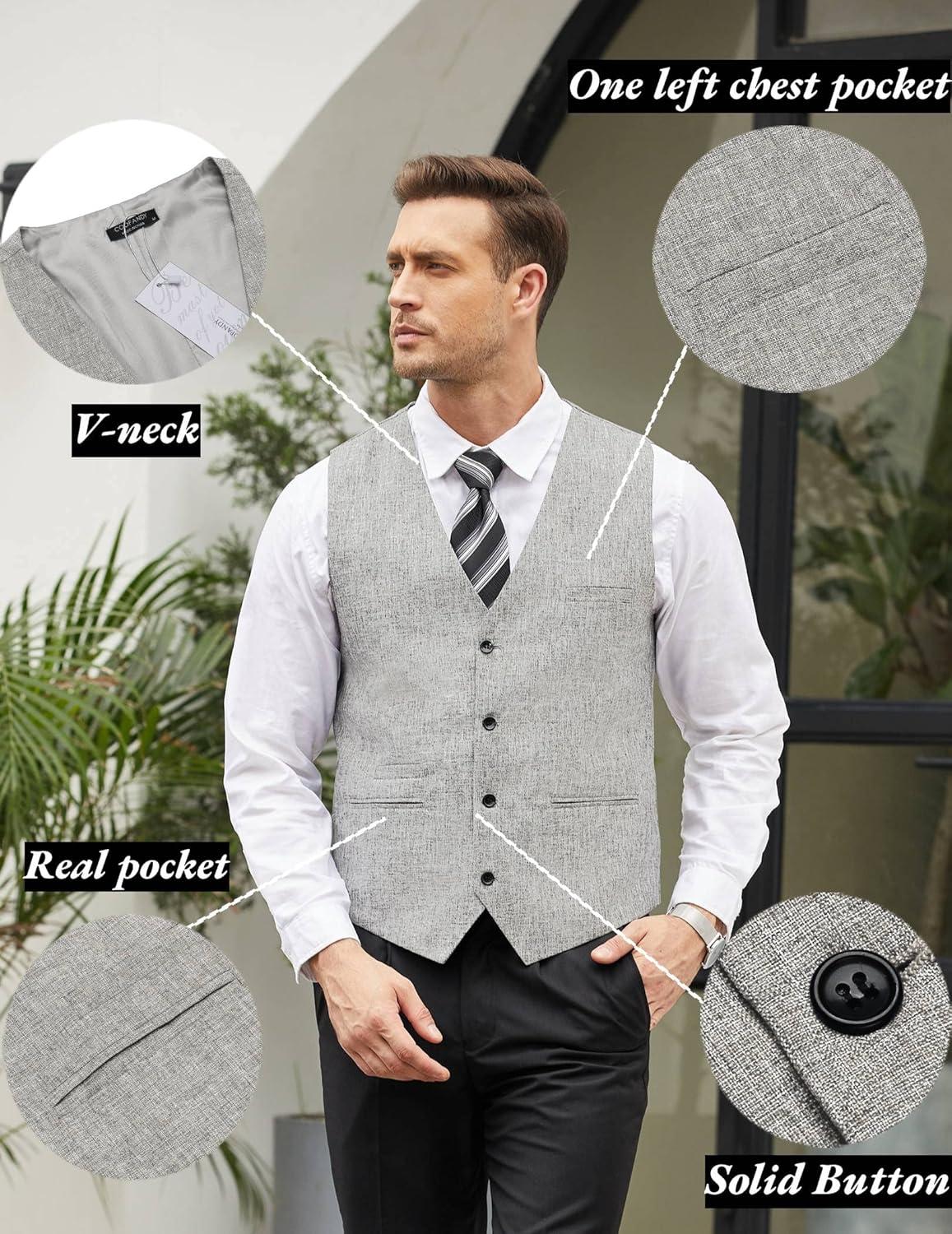 COOFANDY Men’s Casual Business Vests Lightweight Waistcoat Slim Fit Suit Vest(Light Grey)