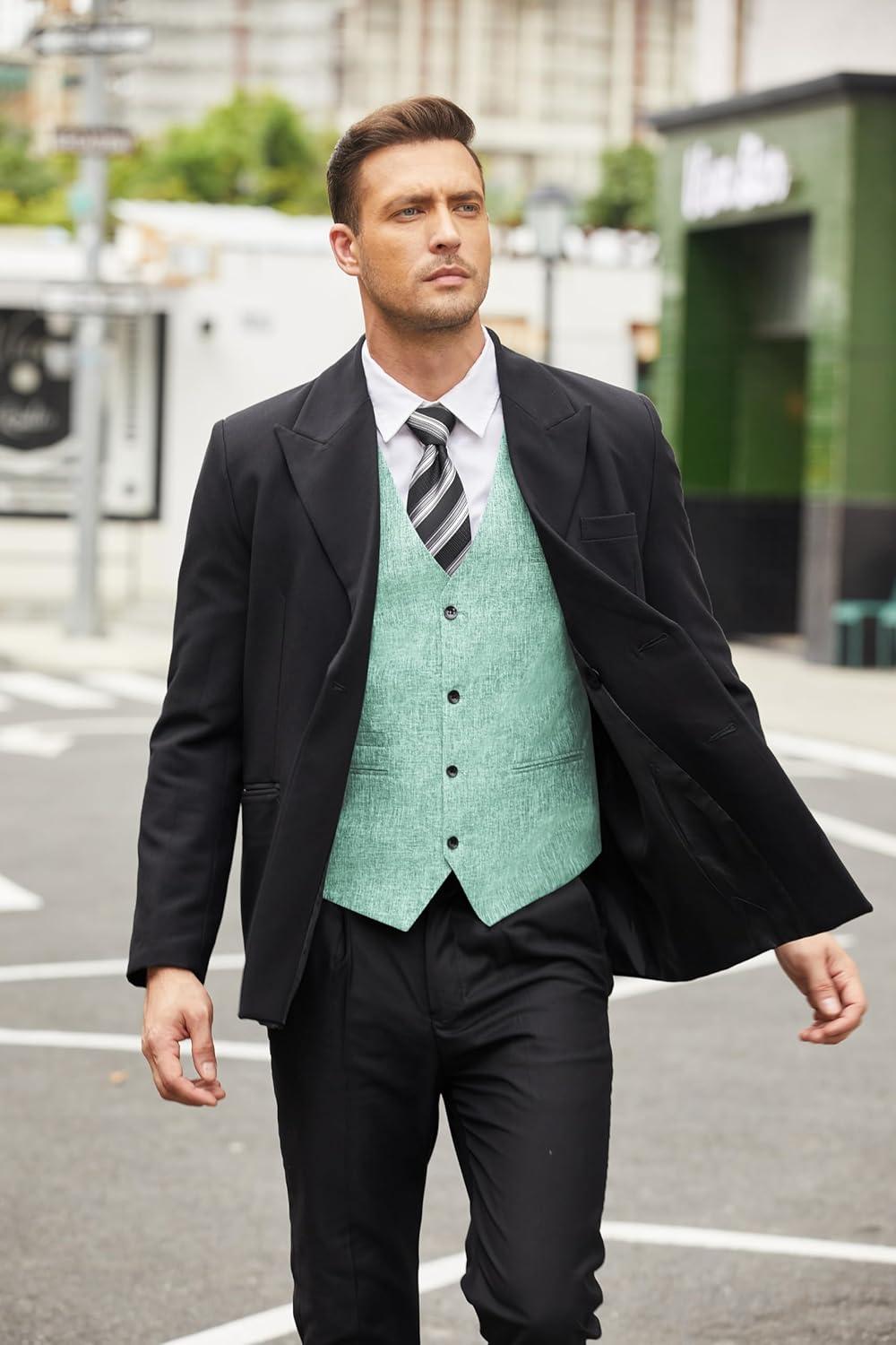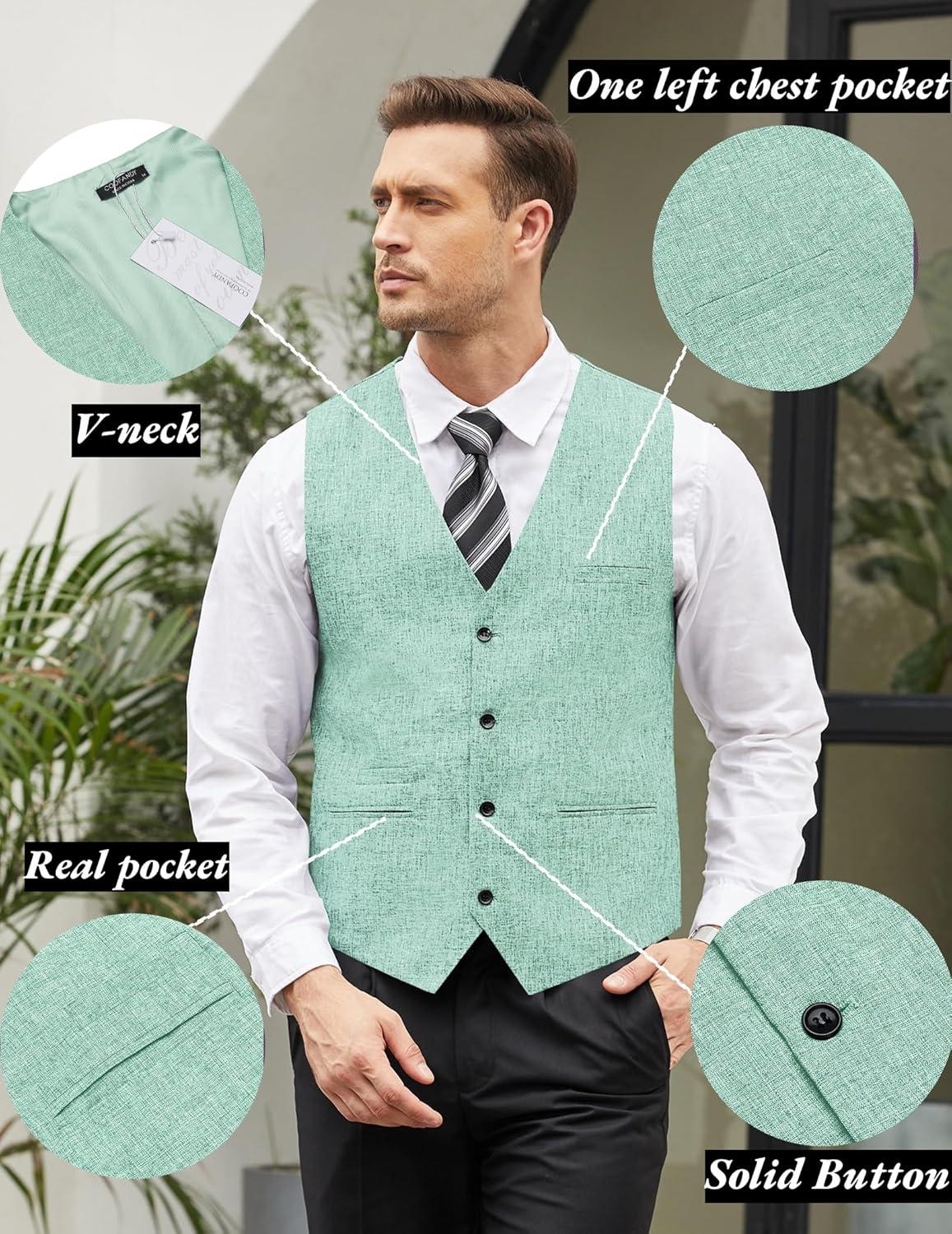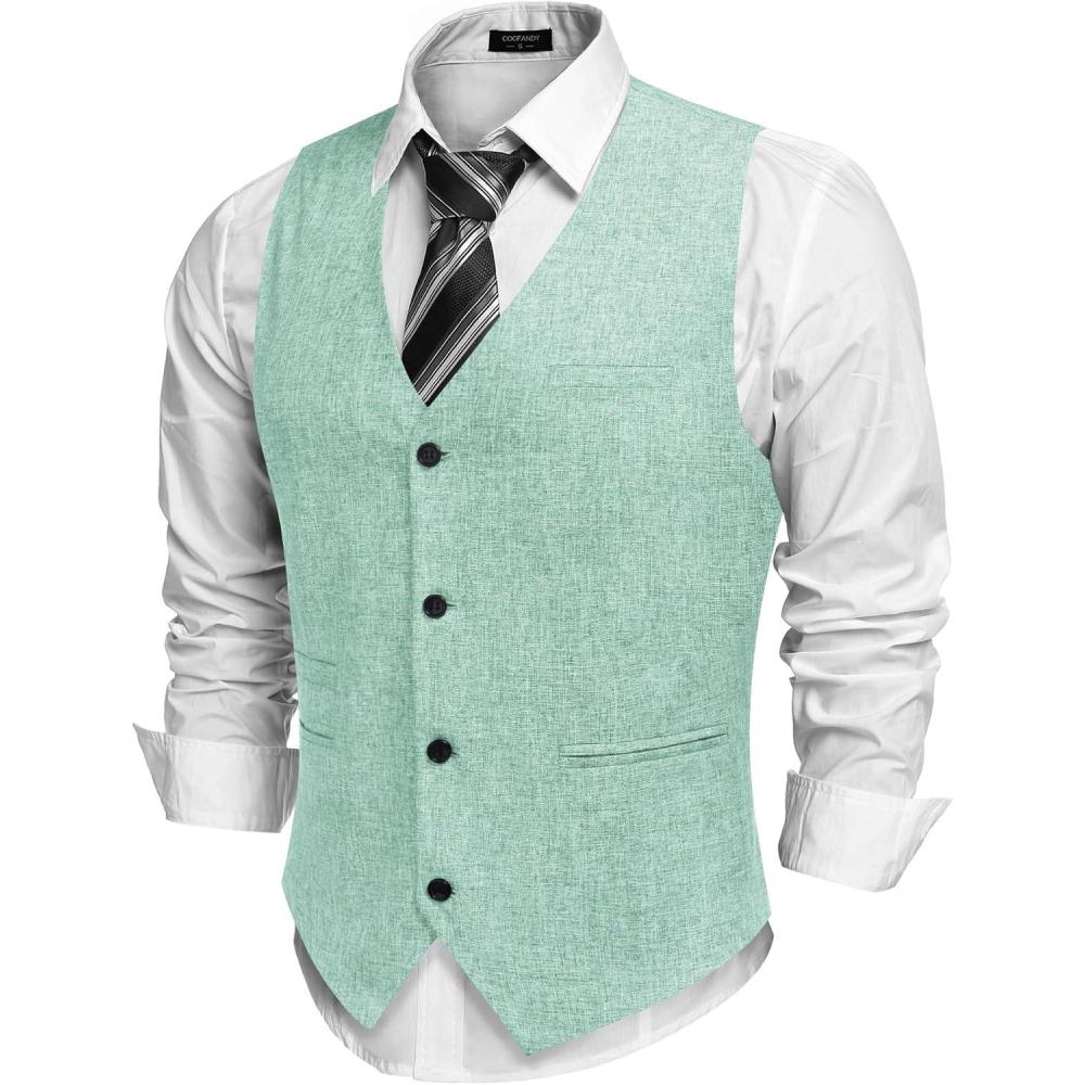 COOFANDY Men's Casual Business Vests Lightweight Waistcoat Slim Fit Suit Vest(Mint Green)