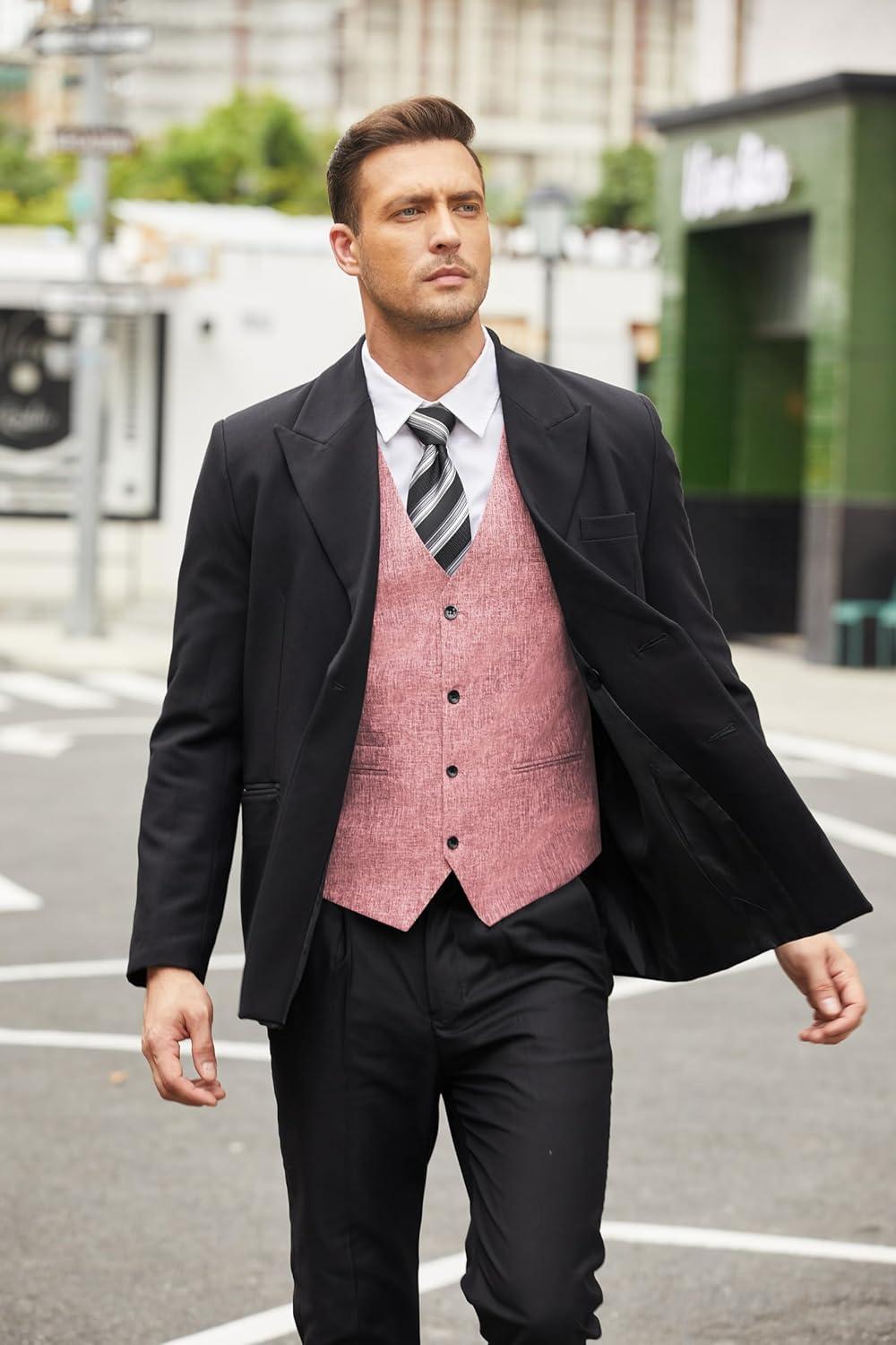 COOFANDY Men's Casual Business Vests Lightweight Waistcoat Slim Fit Suit Vest(Pink)