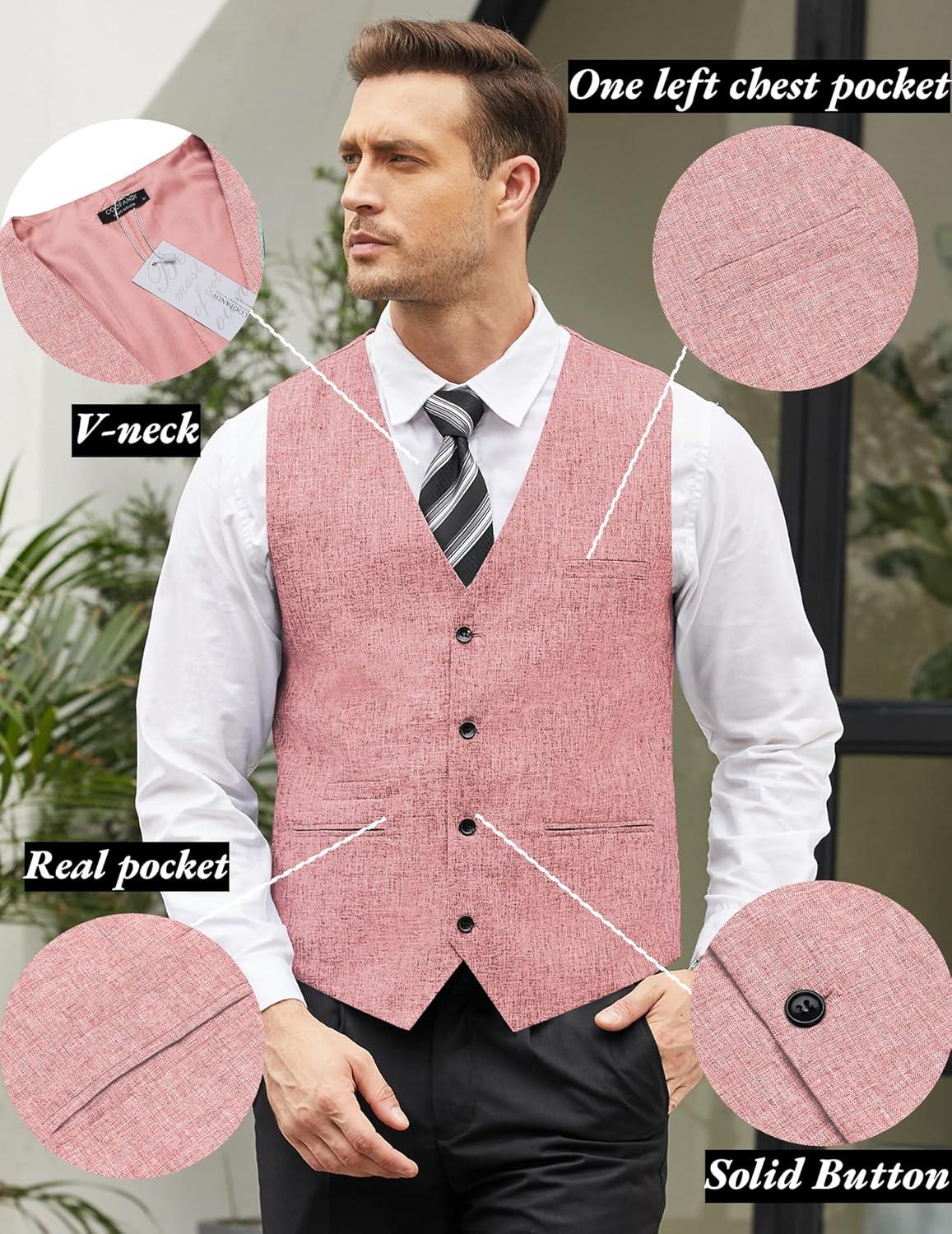 imageCOOFANDY Mens Casual Business Vests Lightweight Waistcoat Slim Fit Suit VestPink