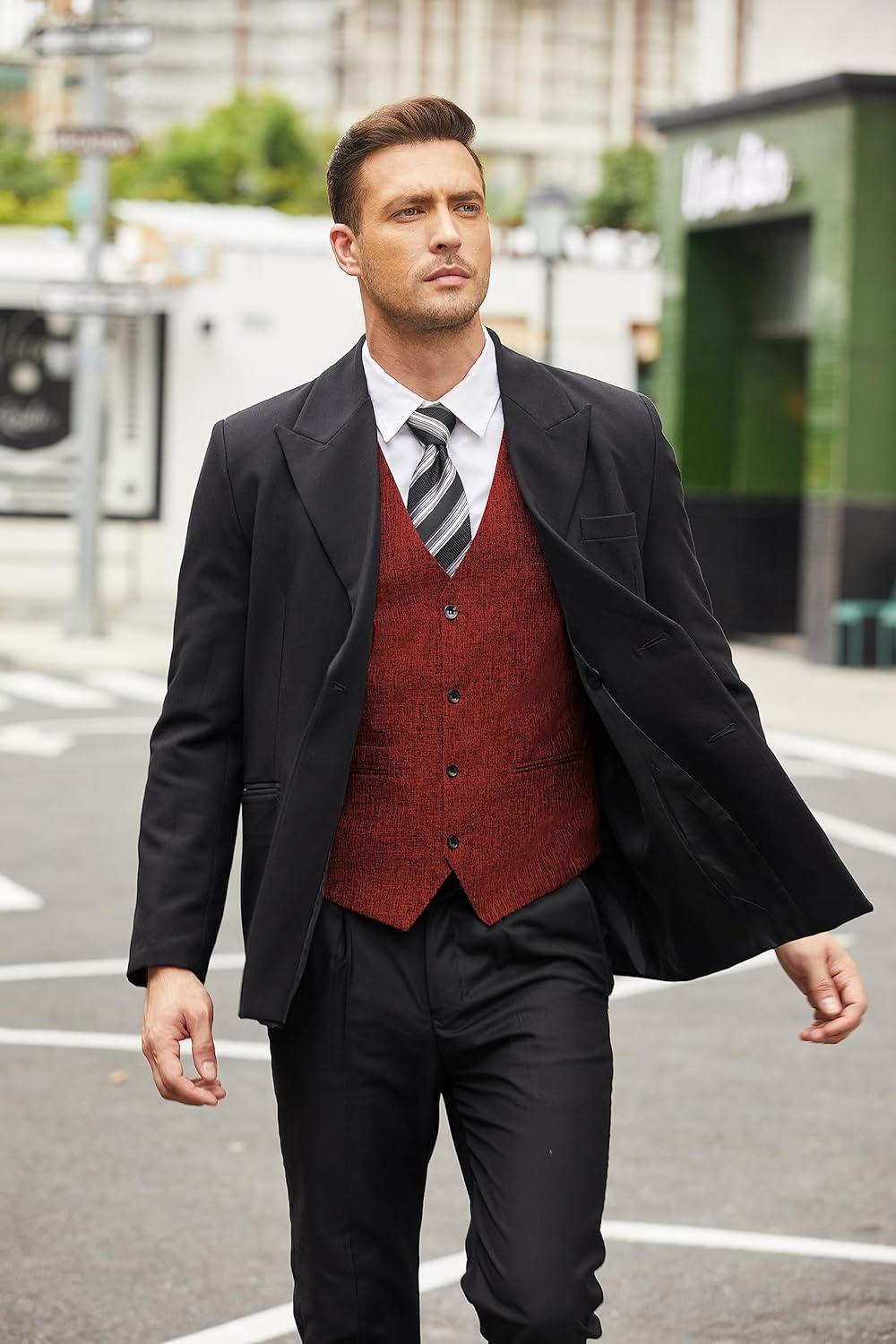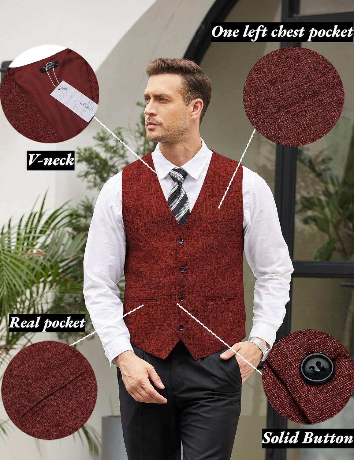 COOFANDY Men's Casual Business Vests Lightweight Waistcoat Slim Fit Suit Vest(Wine Red)