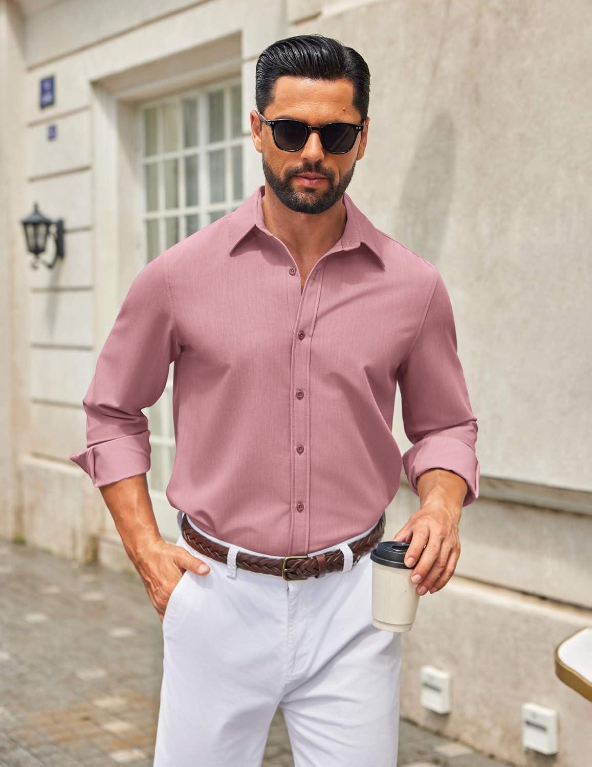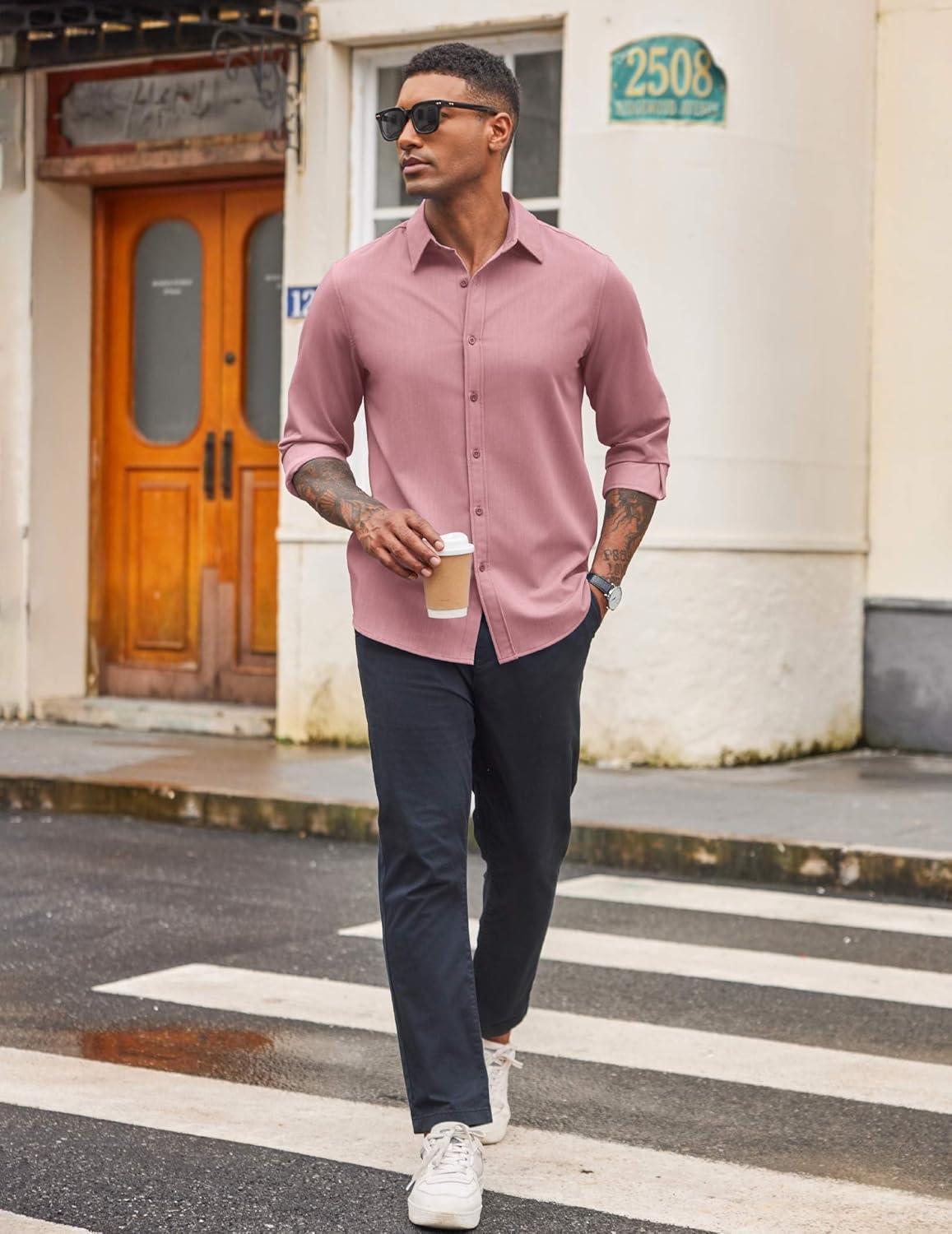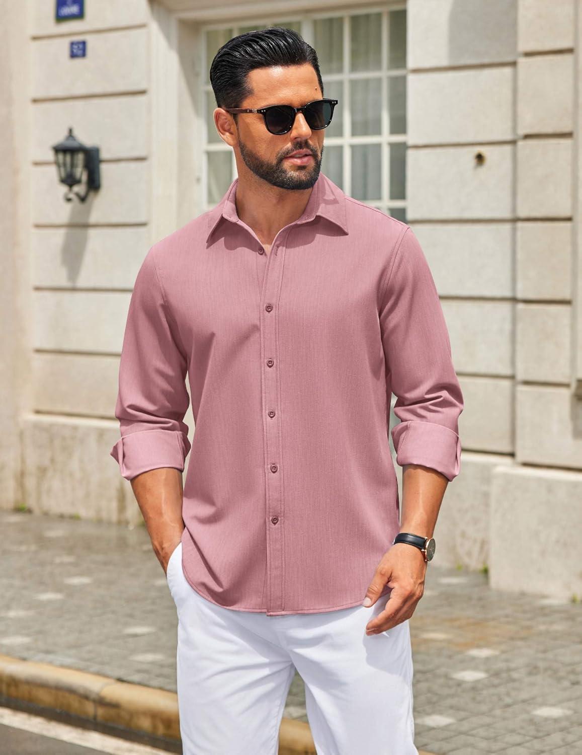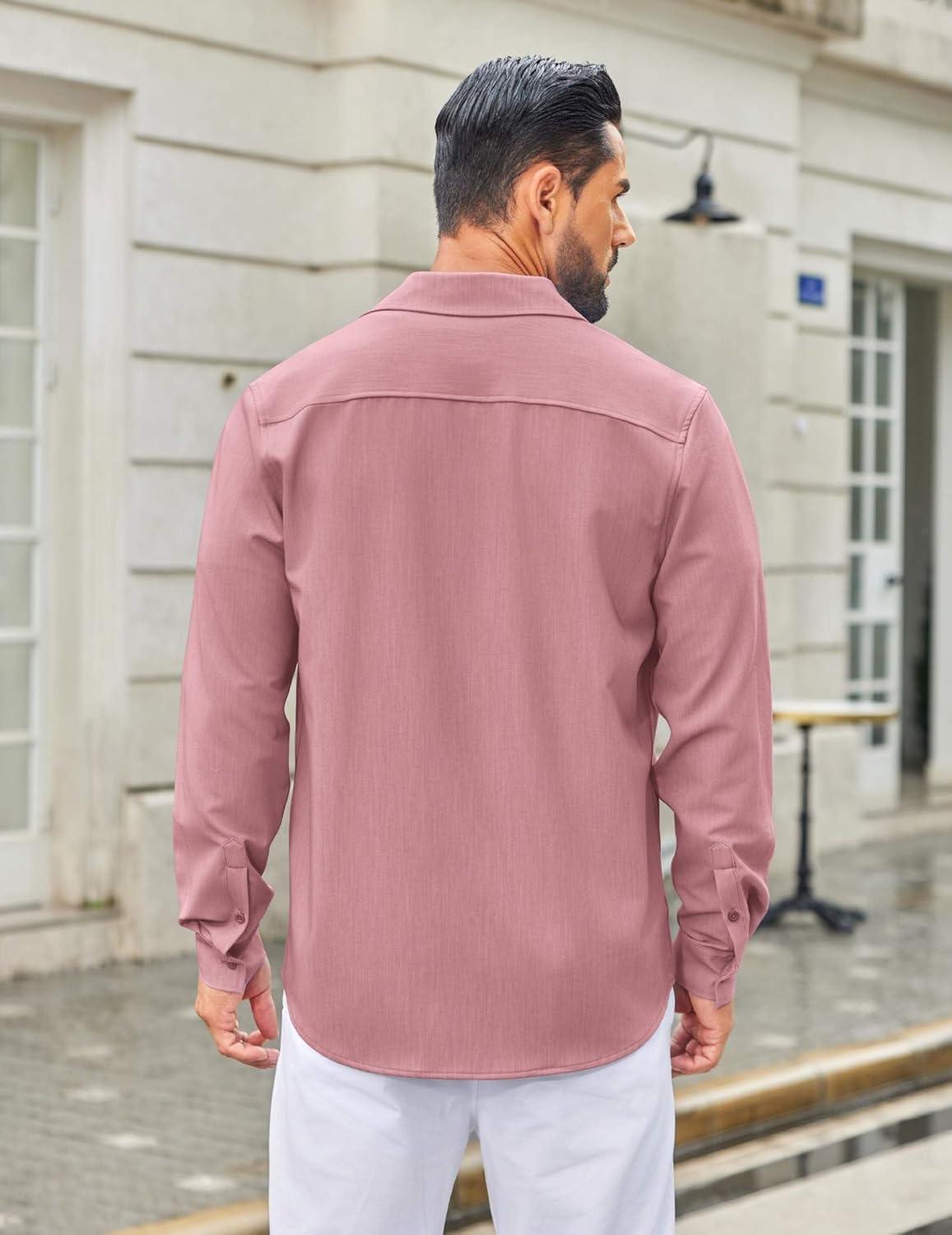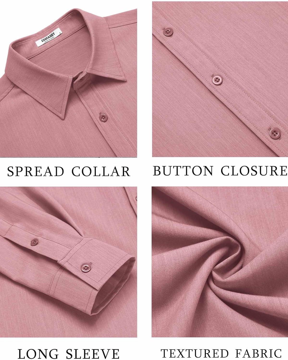 COOFANDY Men’s Casual Button Down Long Sleeve Untucked Denim Dress Shirt(Purple Red)